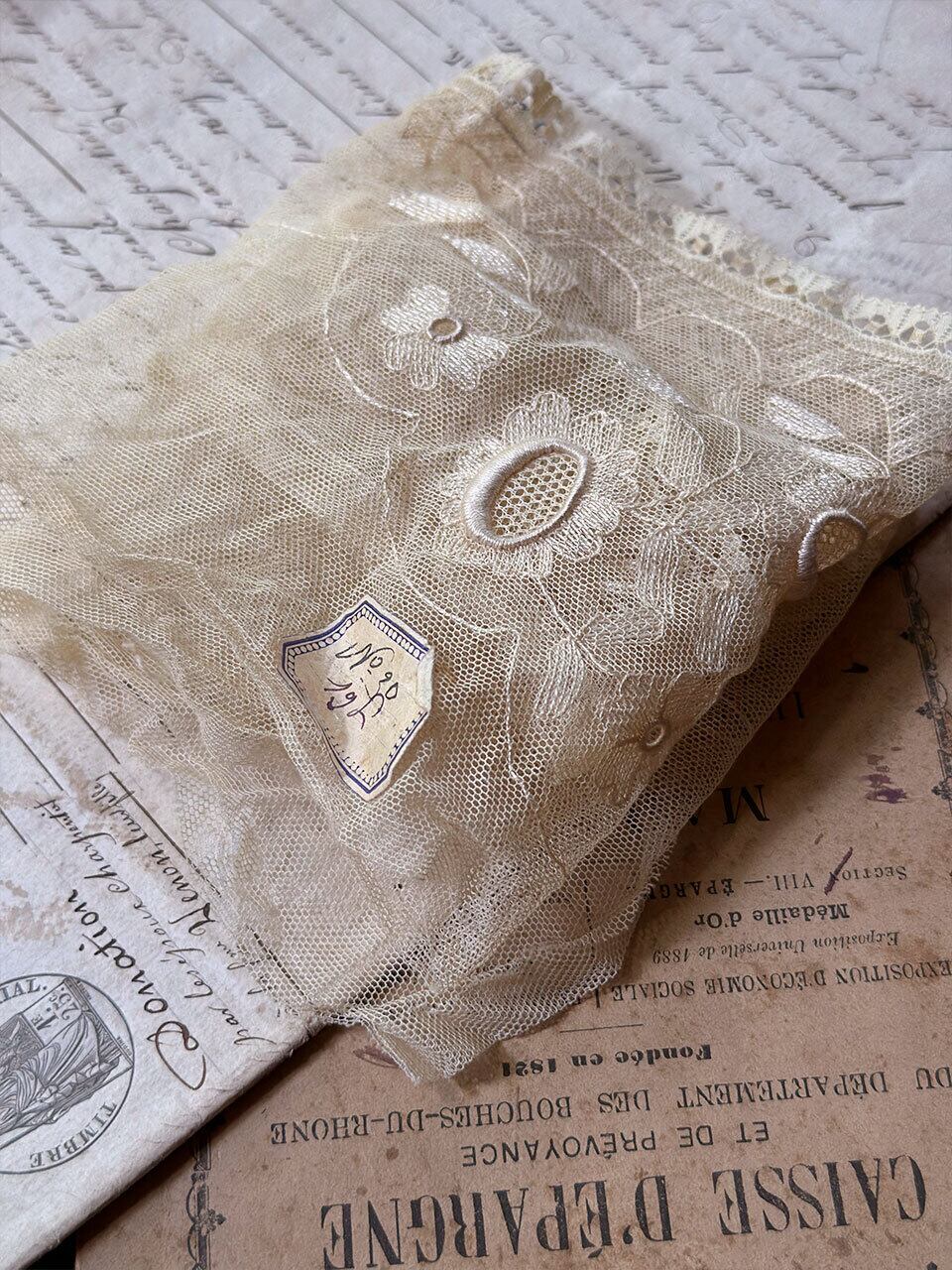 フランスより入荷しました、チュールレース端切れです。