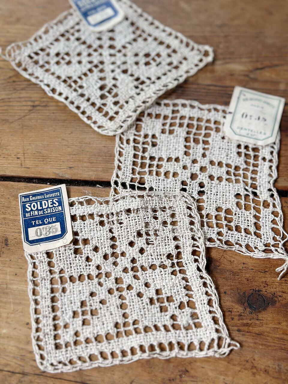 フランスより、紙タグ付きスクエアレースモチーフが届きました。こちらは3枚セットです。