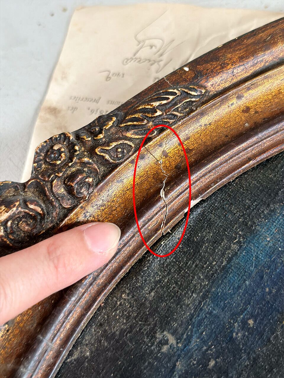 ※額縁には、長年の時を経て刻まれたひび割れが数カ所見られます。特に目立つ箇所は写真に掲載しておりますのでご確認ください。