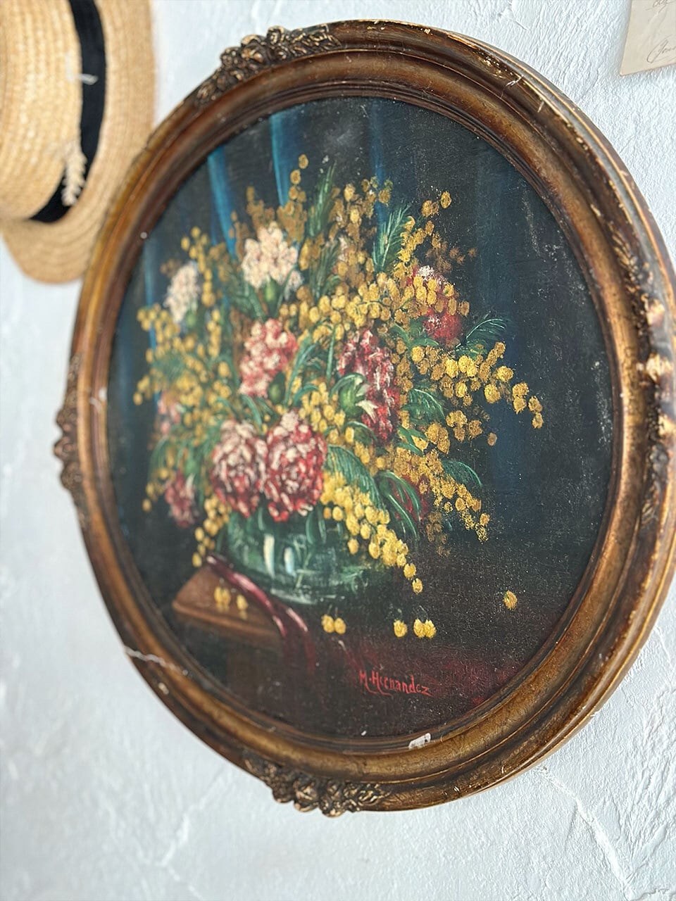フランスにて買い付けました、華やかでありながらも落ち着いた雰囲気を持つ、油絵です。