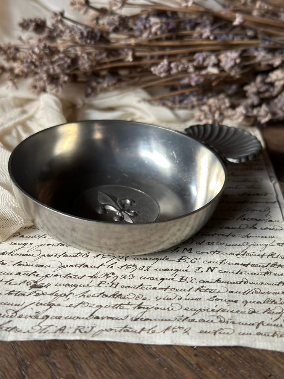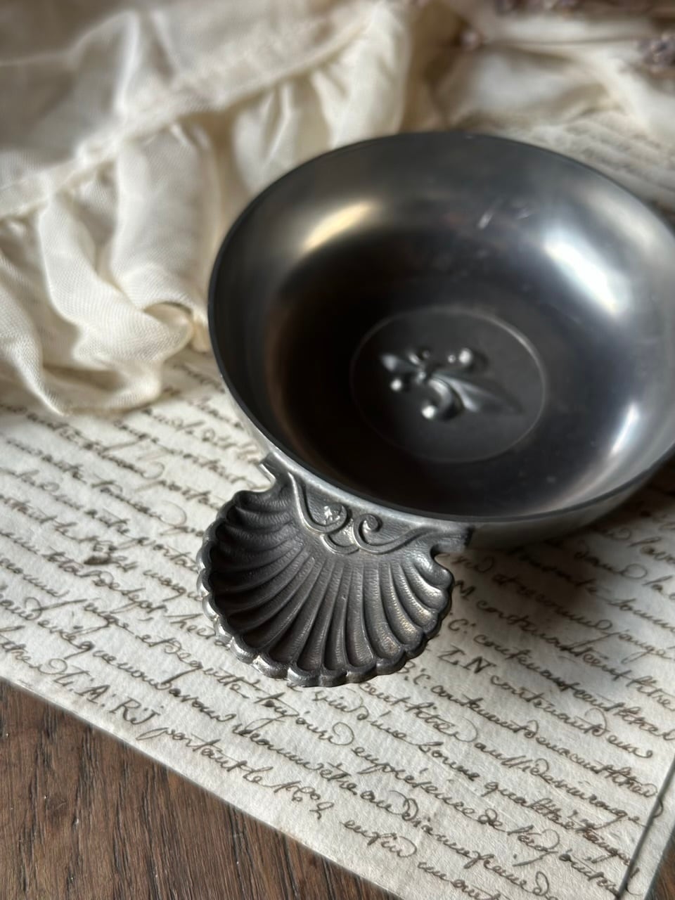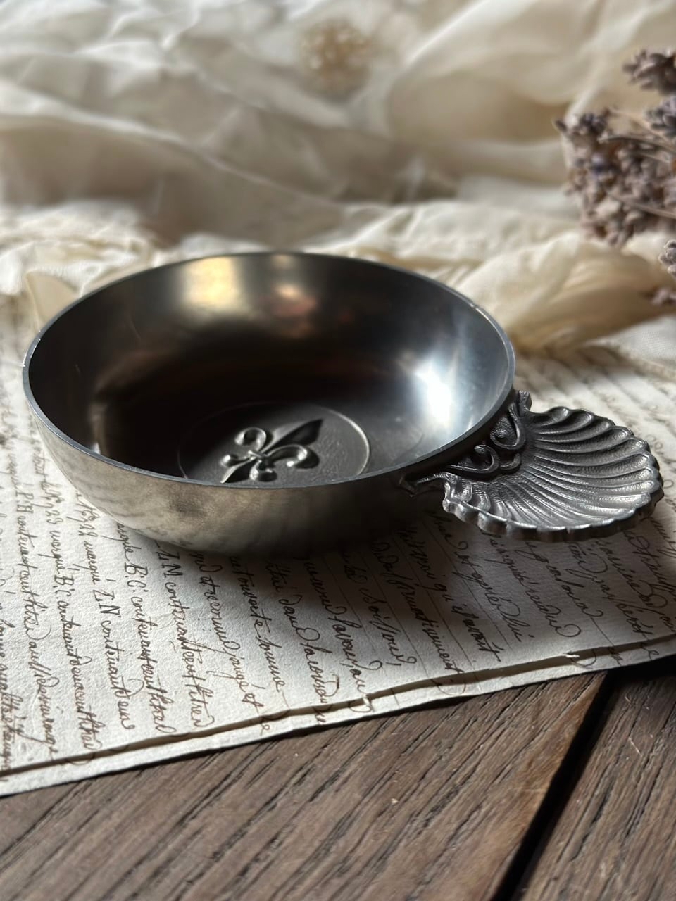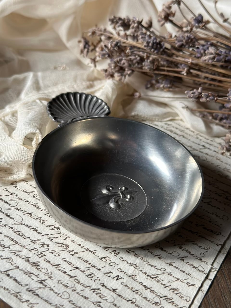 現代では、ワインテイスティングの用途を超え、その芸術的な美しさが暮らしを彩ります。アクセサリーや小さな鍵を置くトレイとして、また、窓辺に飾れば、柔らかなピューターの光沢がフレンチシックなディスプレイオブジェとして空間に深みを与えてくれるでしょう。