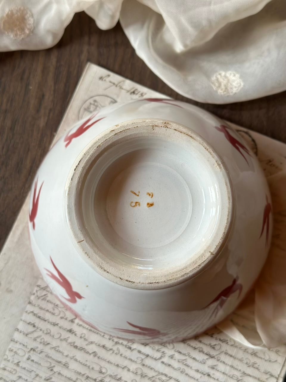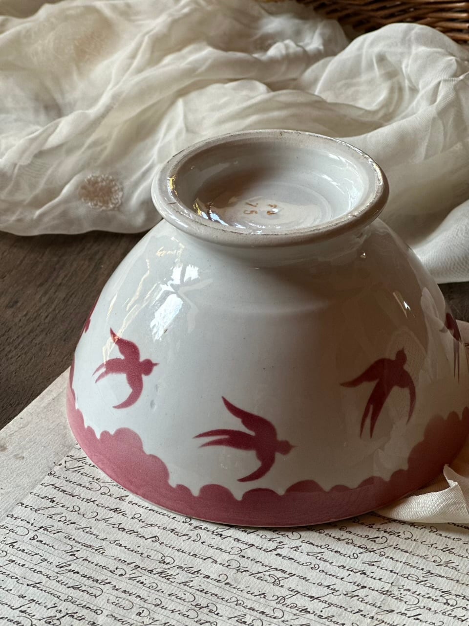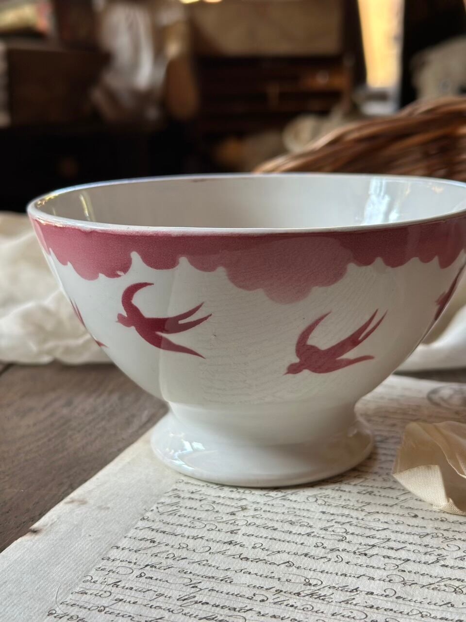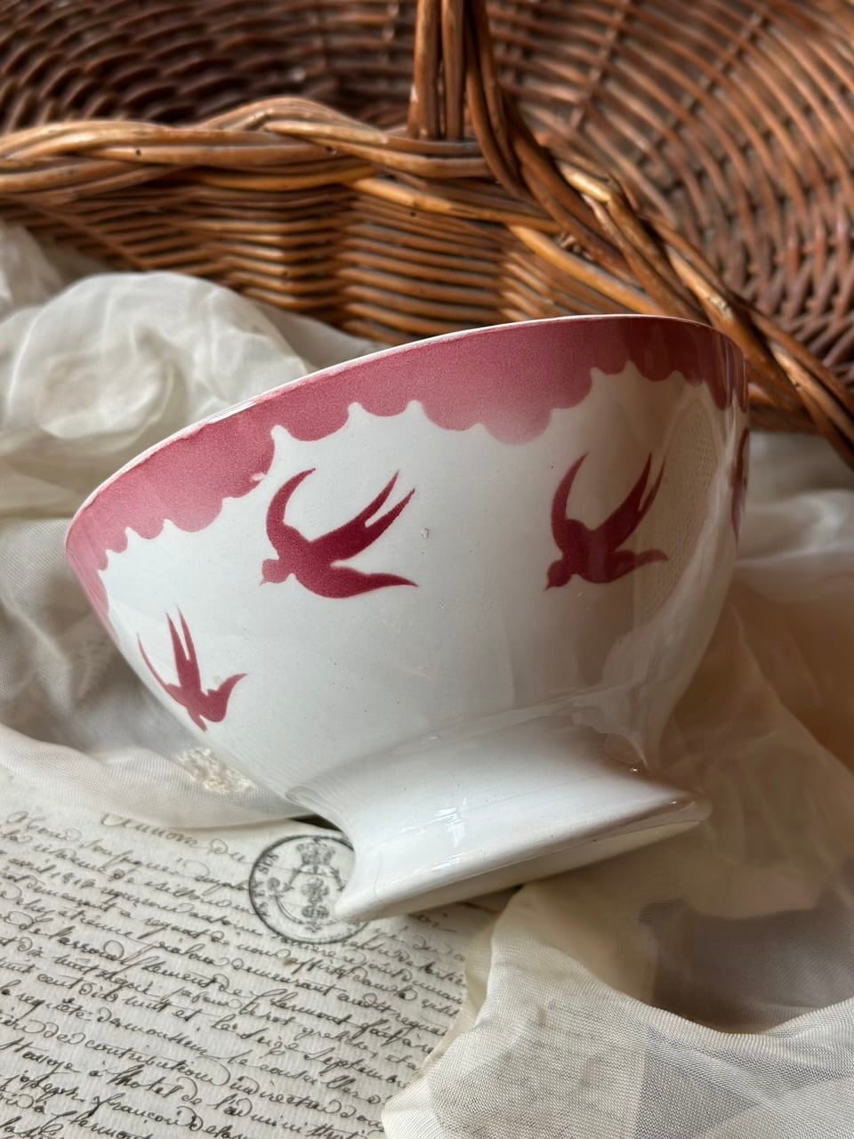 フランスより入荷しました、1900年初頭バドンヴィレのつばめ柄カフェオレボウルです。