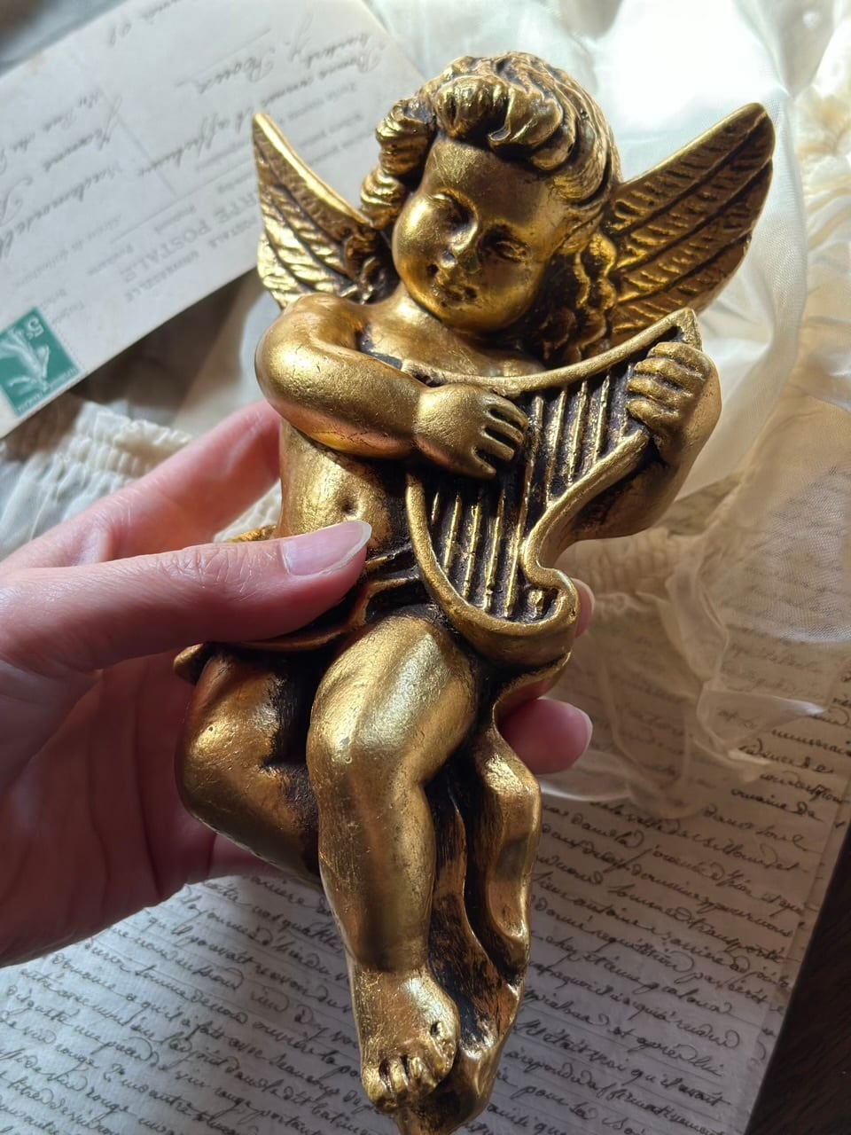 ハープを奏でる天使 ケルビムの壁掛け装飾 金色