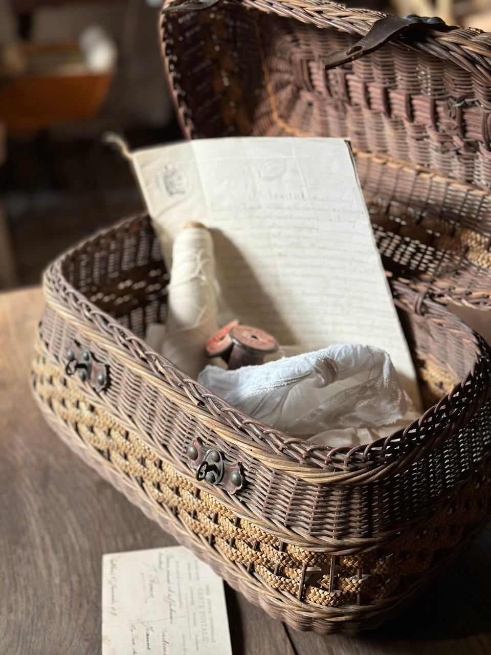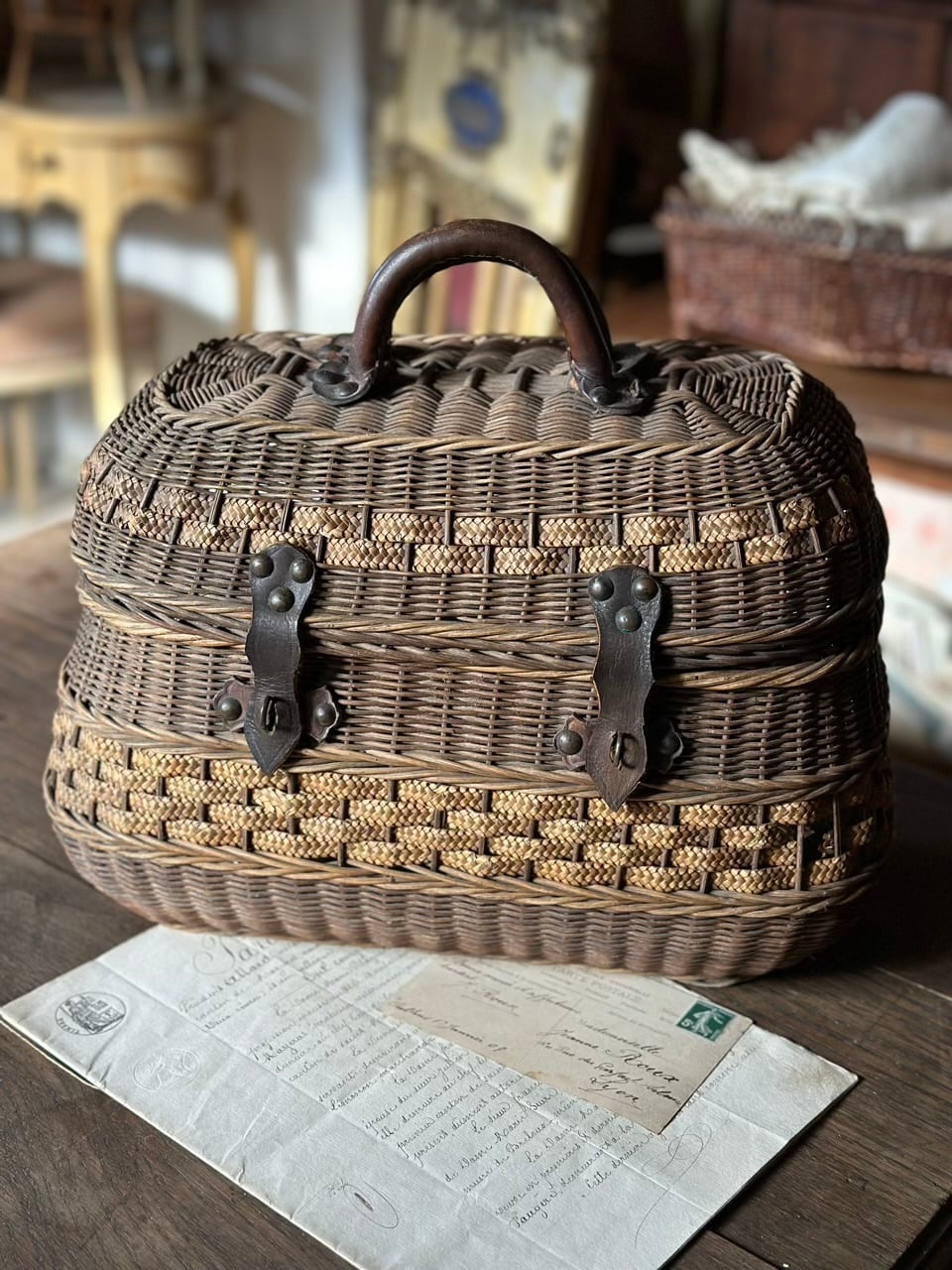フランスより入荷しました、趣きたっぷりのパニエ・ヴァリーズ(バスケットトランク)をご紹介します。