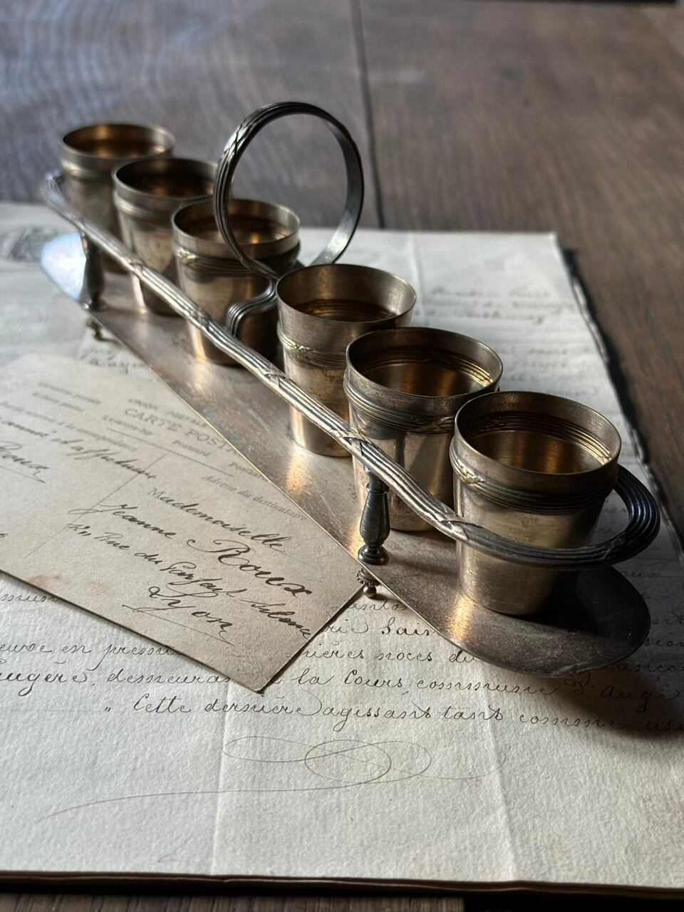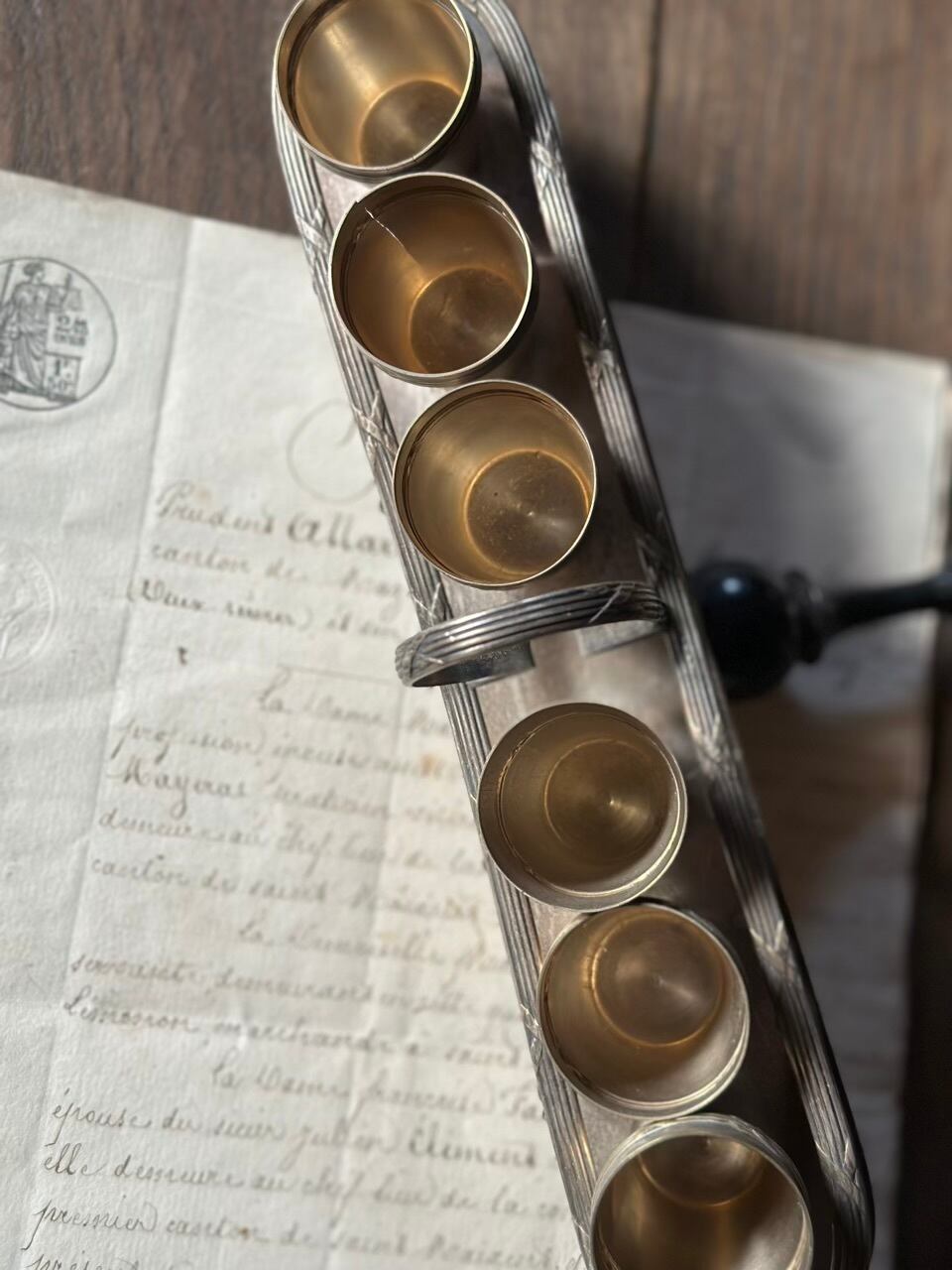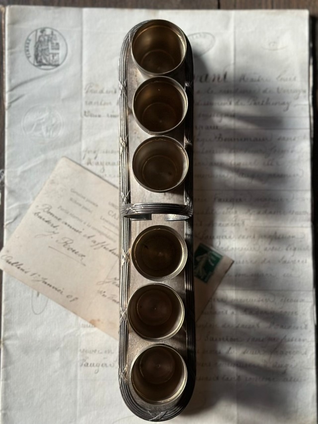 当時のフランスの食卓では、食事の締めくくりにこうした小さなカップで強いお酒や甘いリキュールを嗜み、夜遅くまで語らう時間が愛されていました。