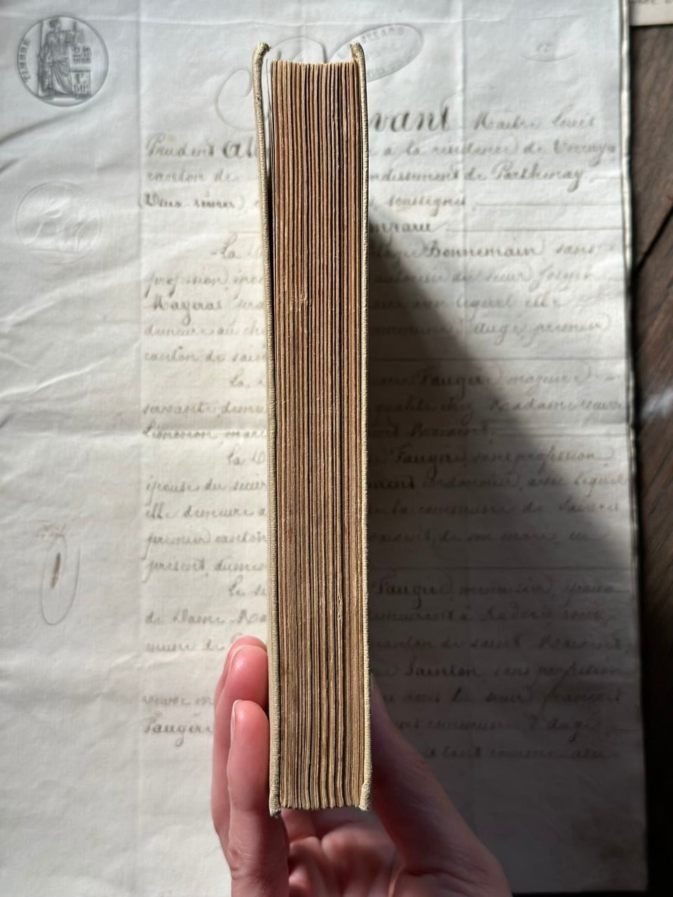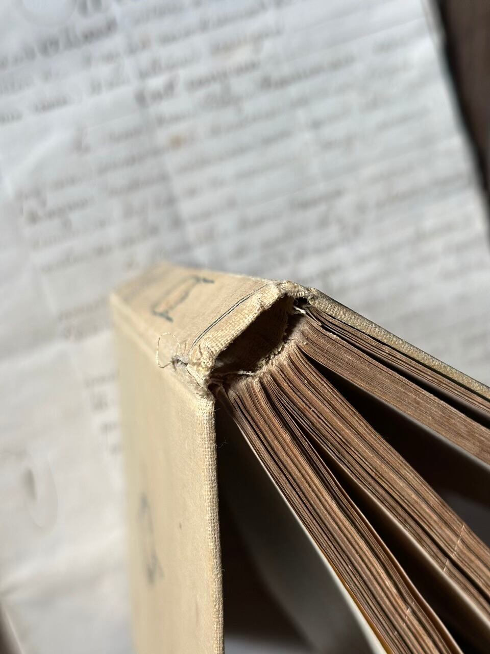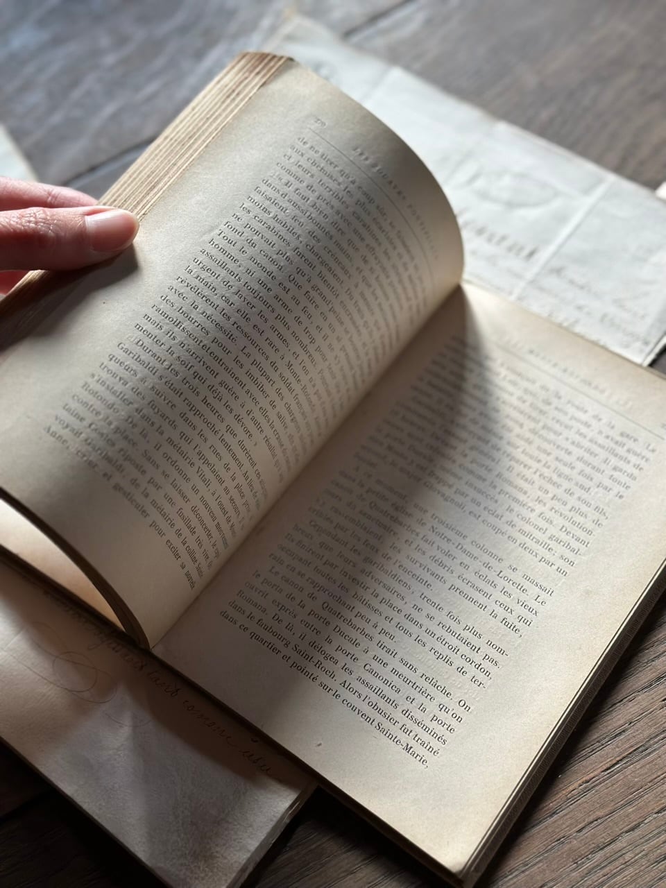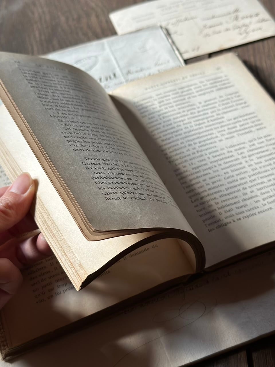 100年以上の時を経たこの古書は、単なる読み物ではなく、空間を彩るフレンチアンティークのオブジェとして最高の魅力を発揮します。