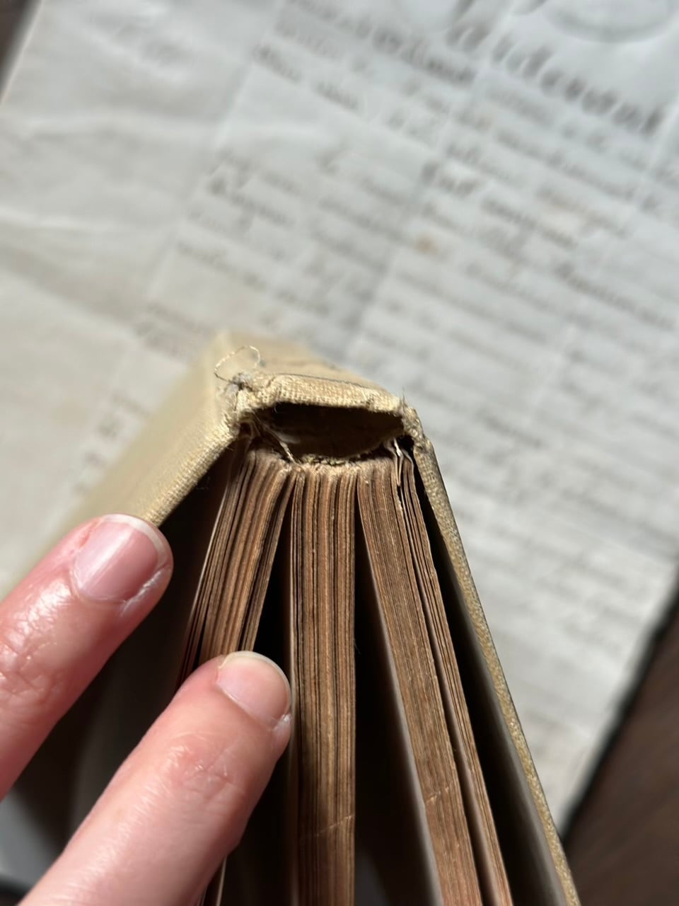 ※背表紙部分の糊付けが剥がれています。閉じた状態ではそこまで気になりませんが、開いた時に少し浮いてくる形になります。