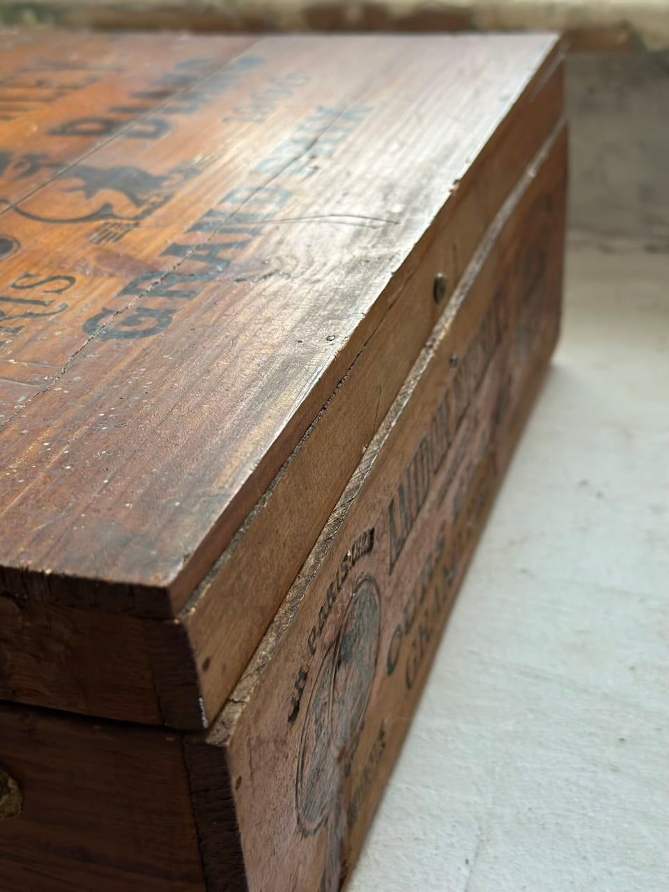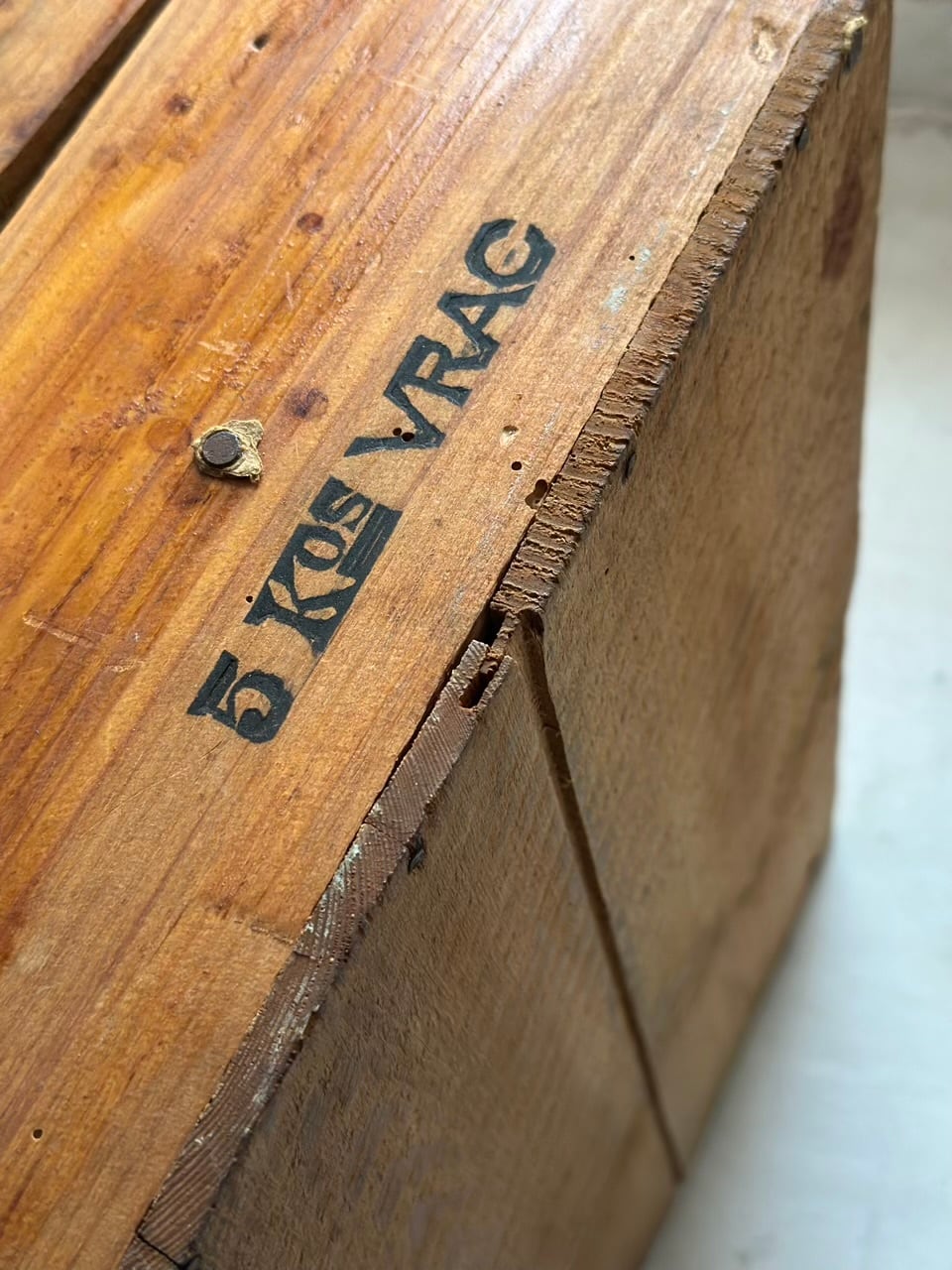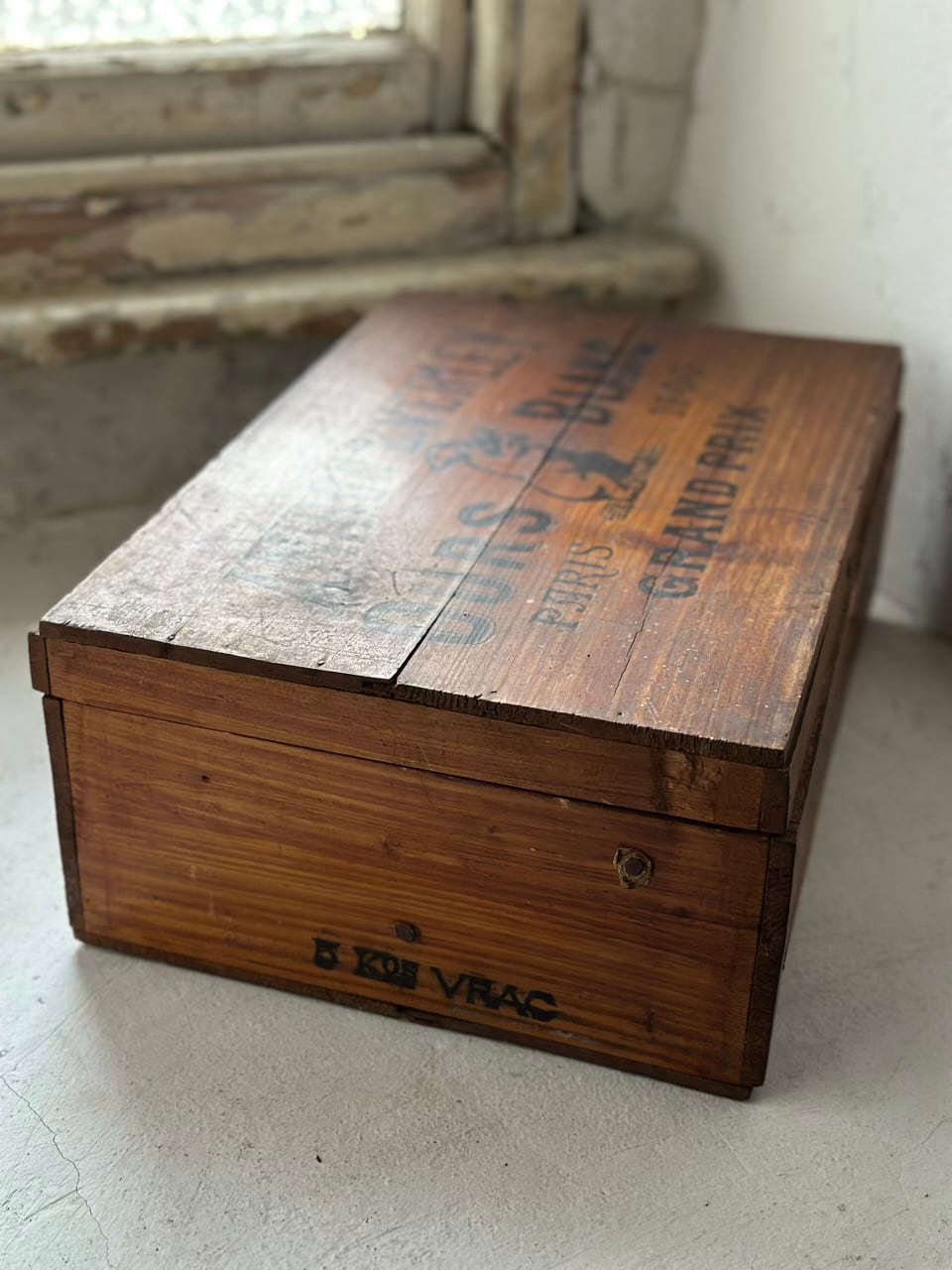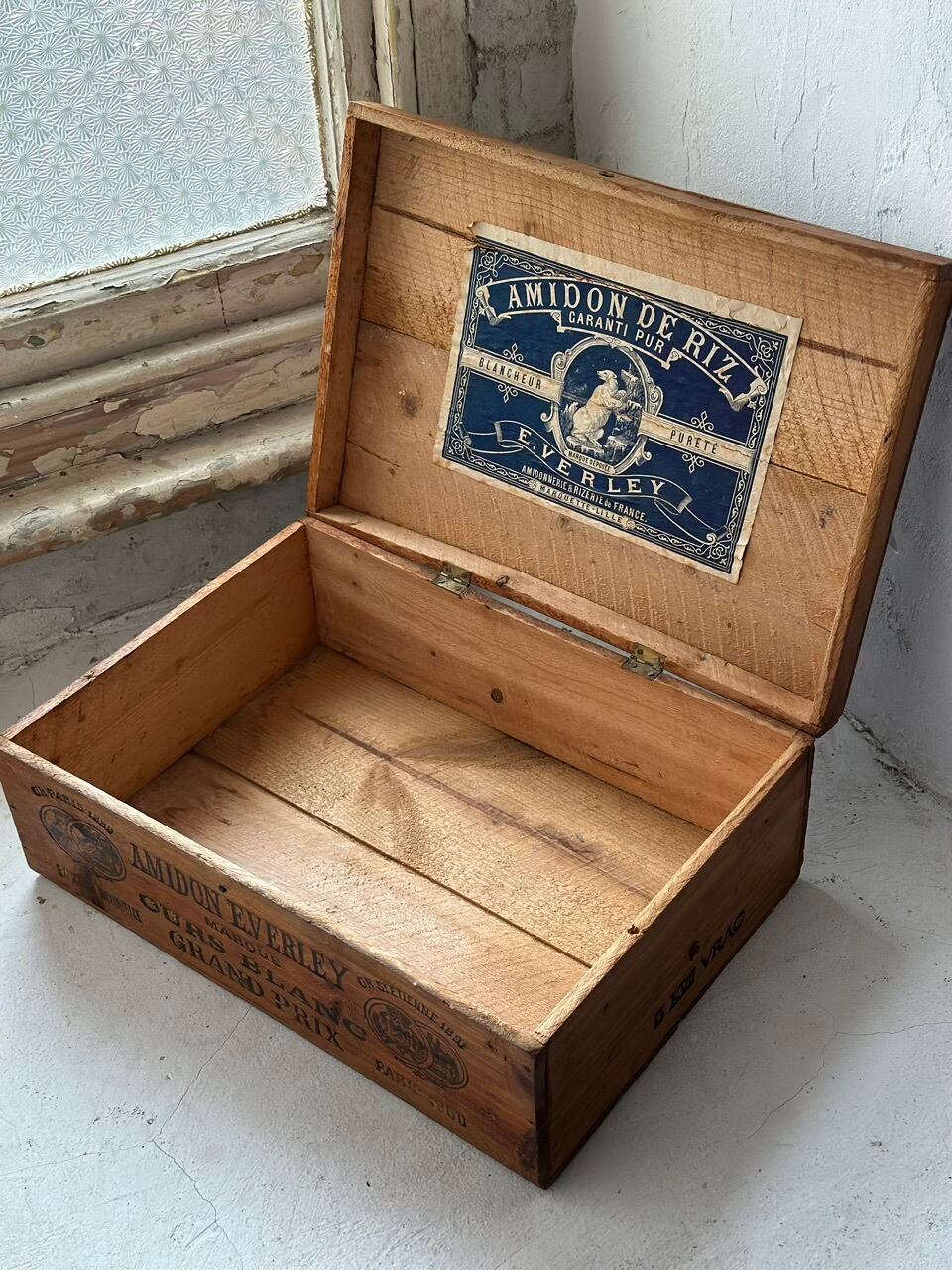 フランスより入荷しました、木製ボックスです。こちらは、フランス・ベルギー国境に近い町、リール近郊の老舗企業 E. VERLEY社が、純粋な米でんぷん(Amidon de Riz)を販売するために用いたアンティーク木箱です。