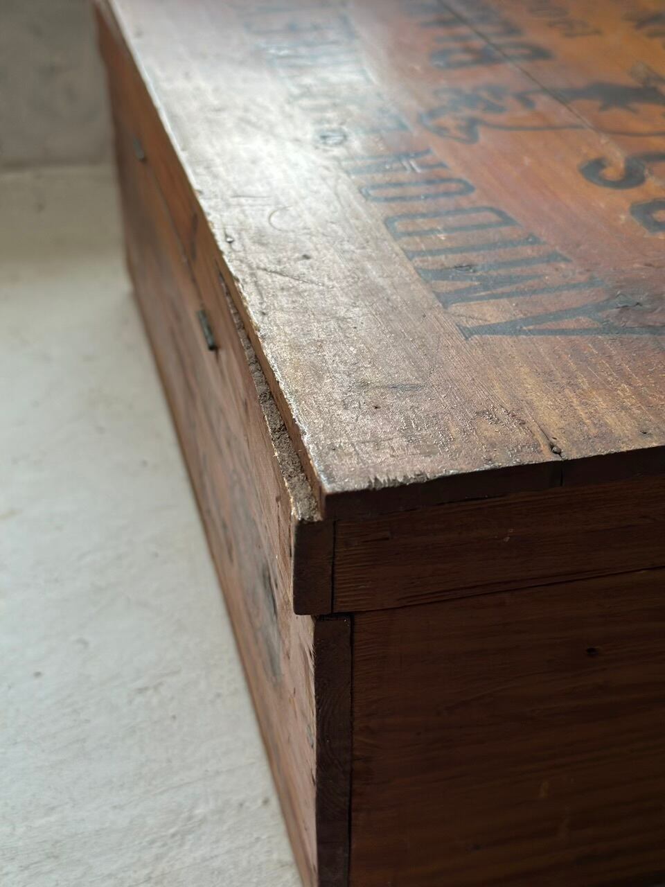 素朴な木材の使い込まれた風合い、そして年月を経たからこそ醸し出される飴色の艶は、古い品だけが持つ風格です。収納箱として実用いただくのはもちろん、インテリアとしても存在感を放ちます。