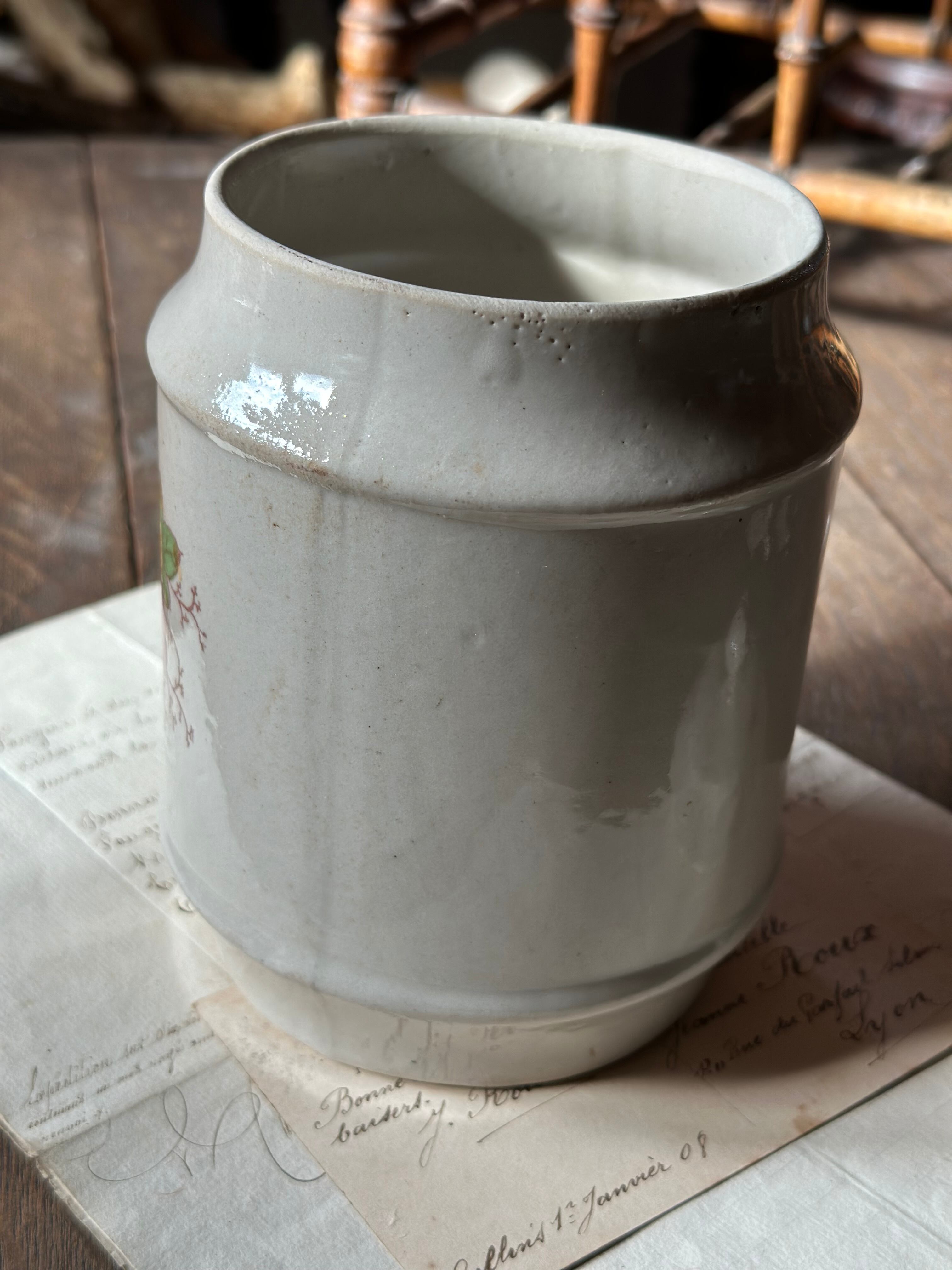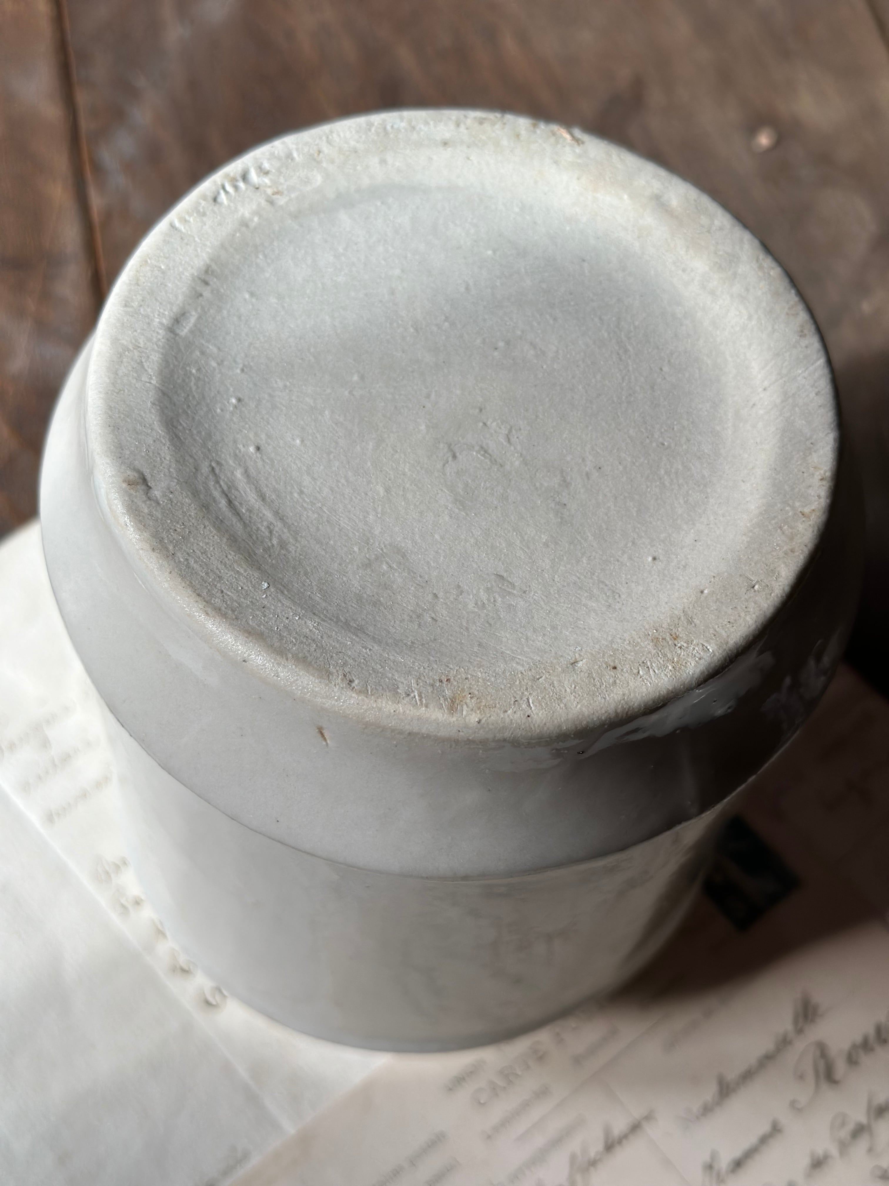 長い年月を経て生まれた細かな貫入や、陶器特有のぽってりとした質感は、アンティークならではの美しさです。手にするたびに、かつてのフランスの家庭で、お菓子を焼いたりカフェオレを作ったりしていた日常の風景が目に浮かぶようです。