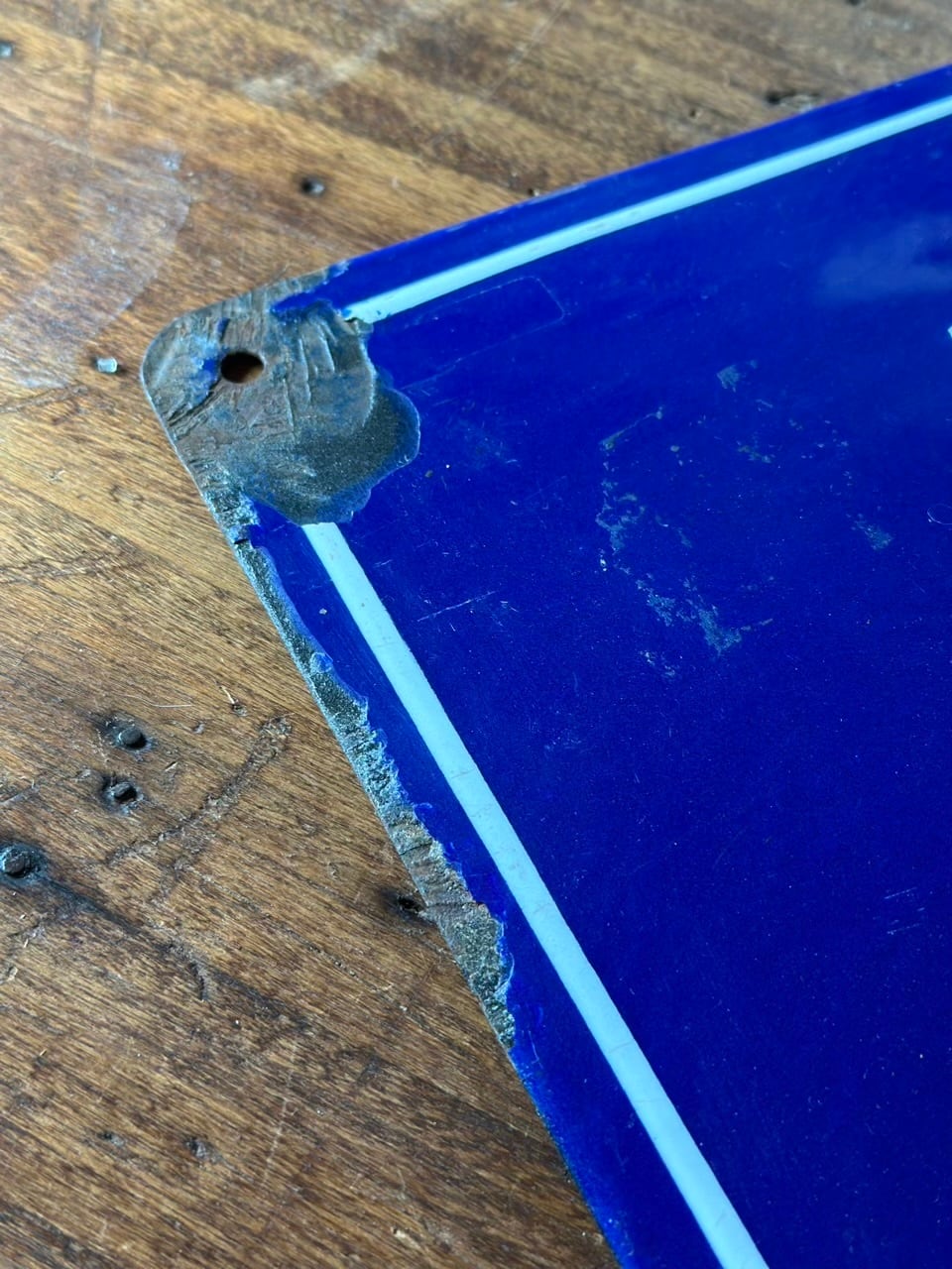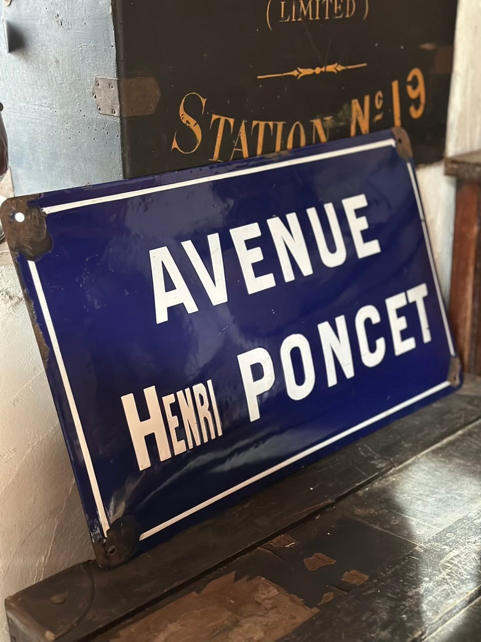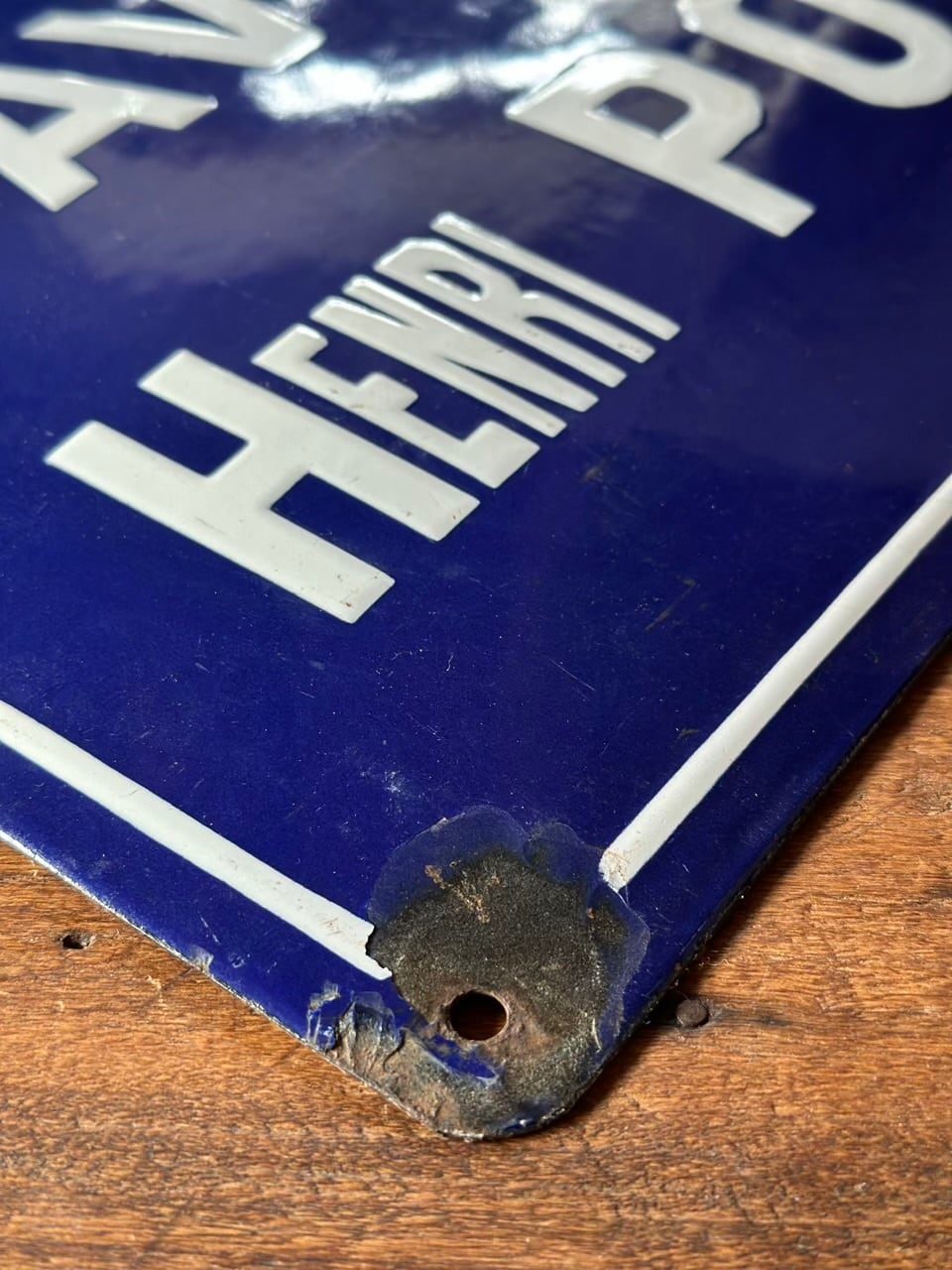 素材は、かつてのヨーロッパで主流だった堅牢なエナメル(ホーロー)製です。長い年月、雨や風、そして柔らかなフランスの陽光に晒されることで生まれた四隅の錆びや、独特の艶消し感は、まさに「時間の結晶」といえる美しさを放っています。