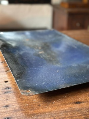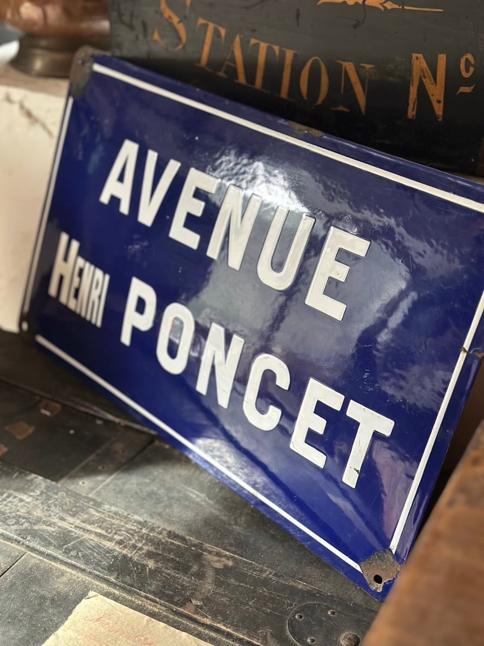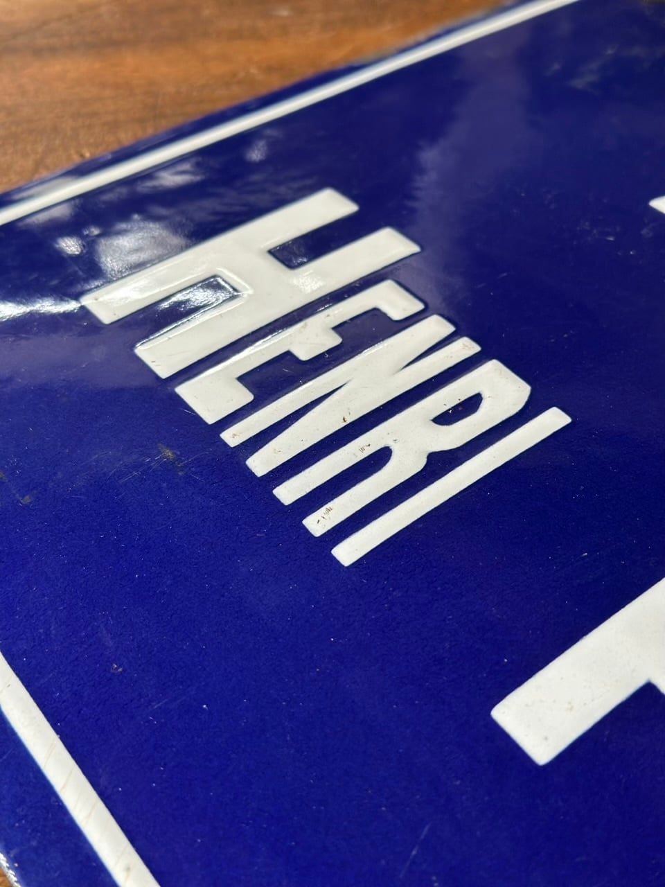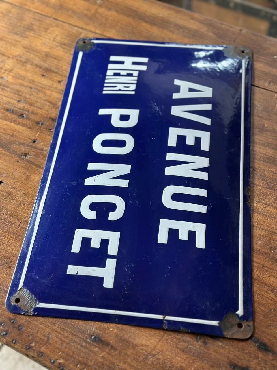素材は、かつてのヨーロッパで主流だった堅牢なエナメル(ホーロー)製です。長い年月、雨や風、そして柔らかなフランスの陽光に晒されることで生まれた四隅の錆びや、独特の艶消し感は、まさに「時間の結晶」といえる美しさを放っています。