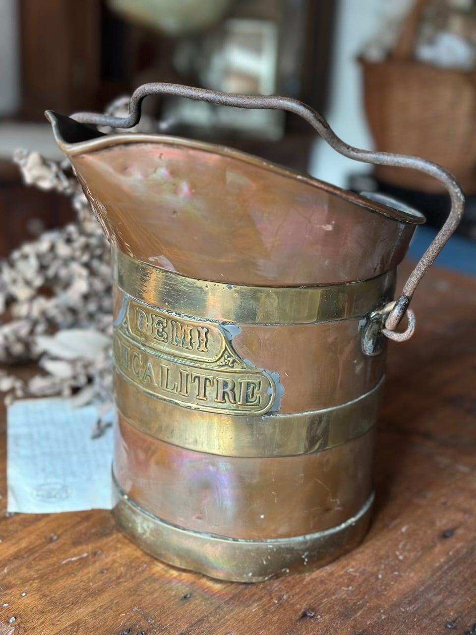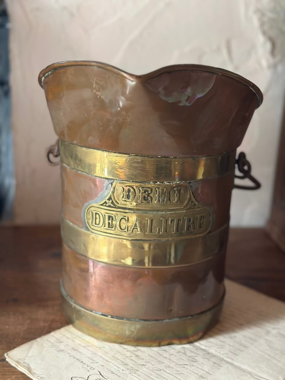メートル法が確立された後のフランスで、日々の商売や生活に欠かせない「道具」として誕生しました。「Demi Decalitre」とは、10リットル(Decalitre)の半分、つまり5リットルを指します。