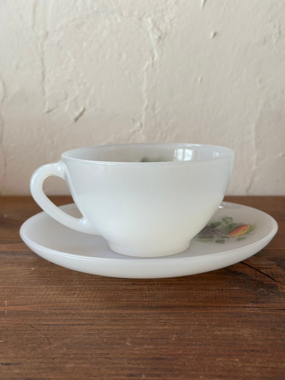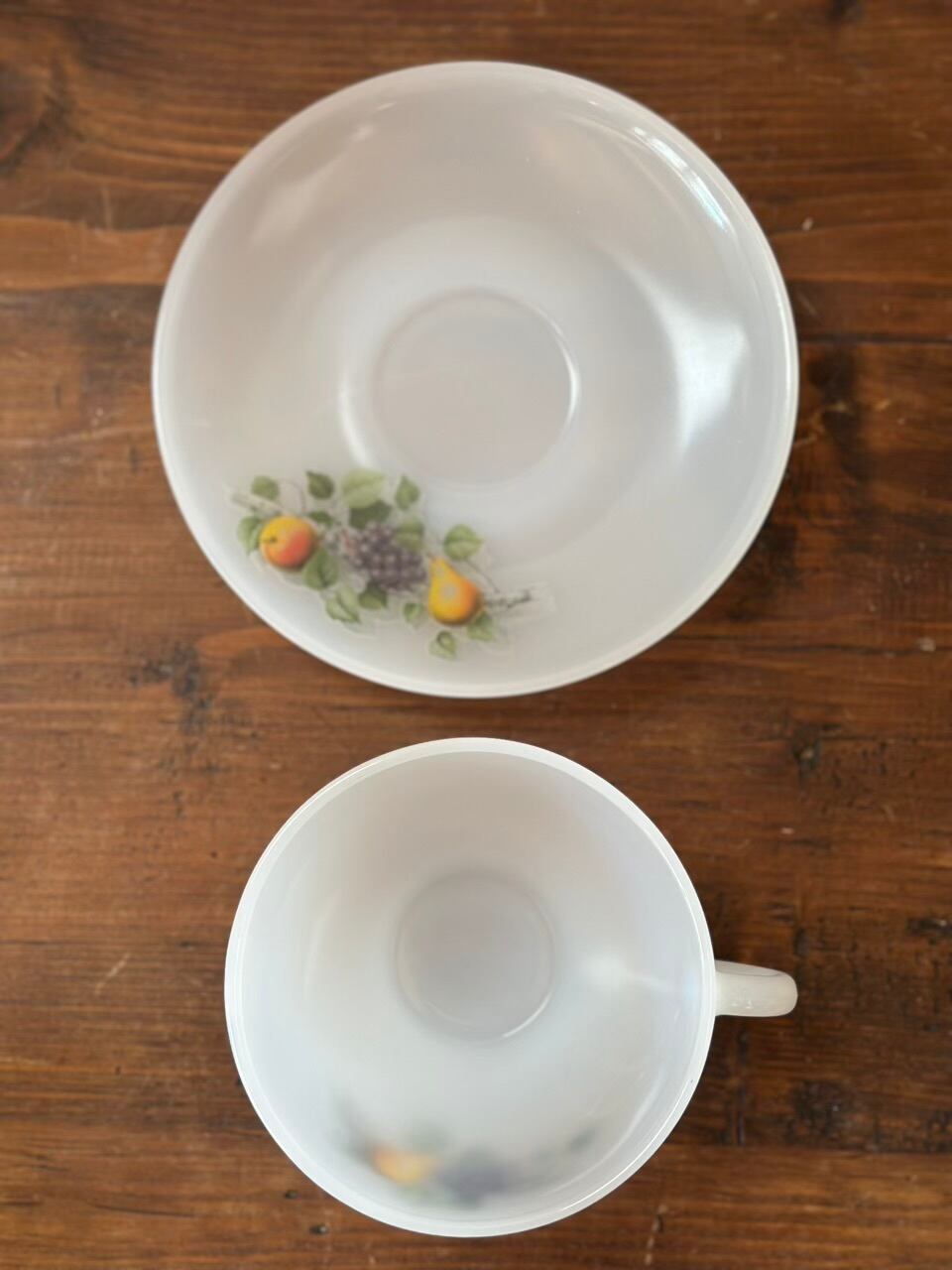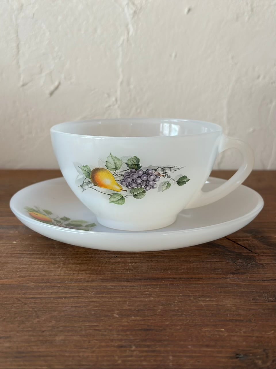 Arcopal ミルクガラスのカップ&ソーサー 洋梨と葡萄の柄