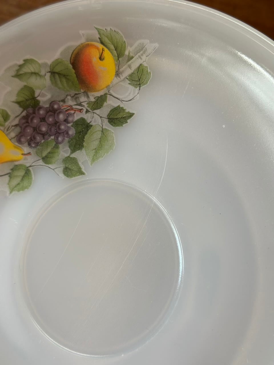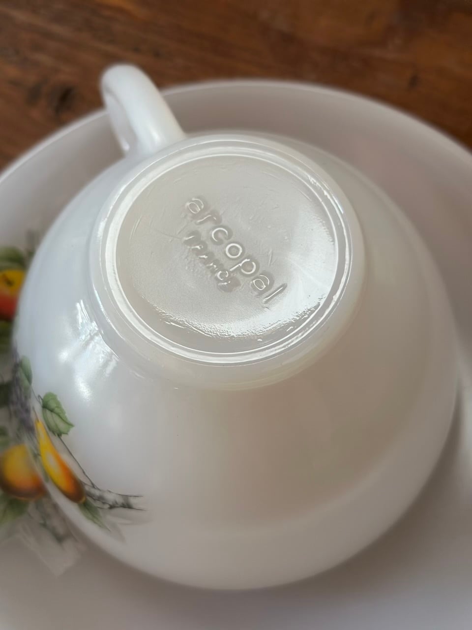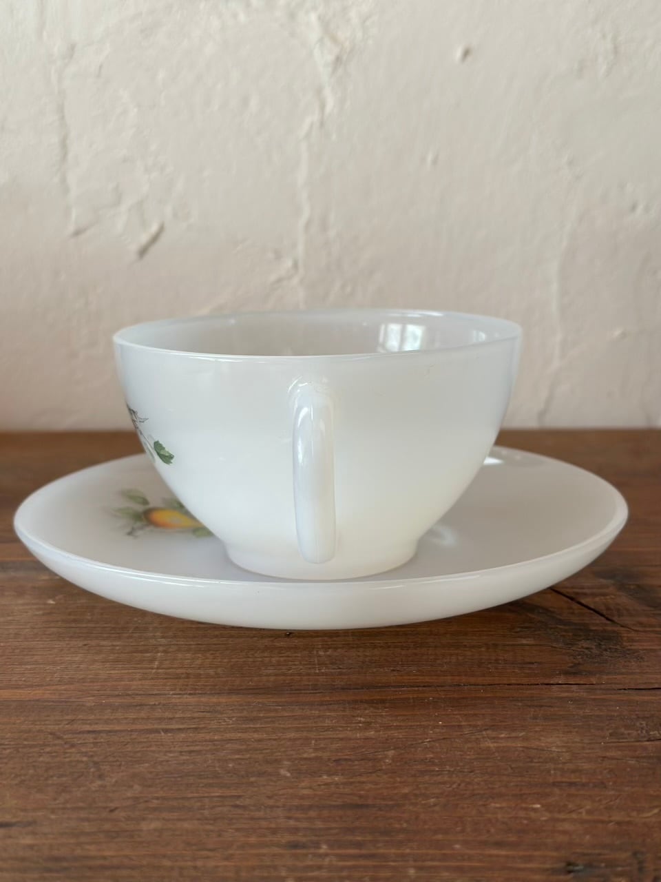 Arcopal ミルクガラスのカップ&ソーサー 洋梨と葡萄の柄