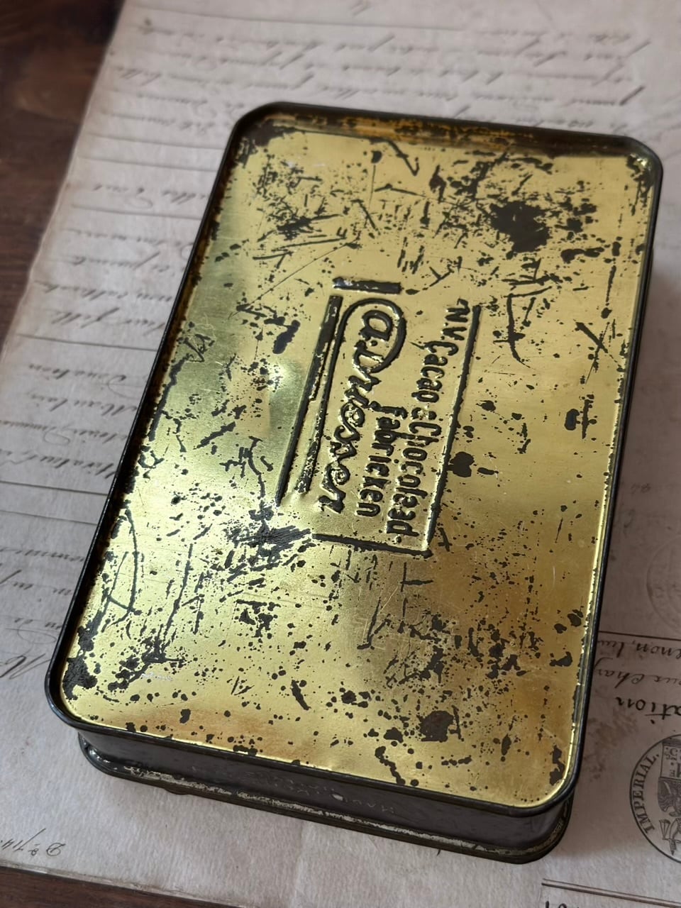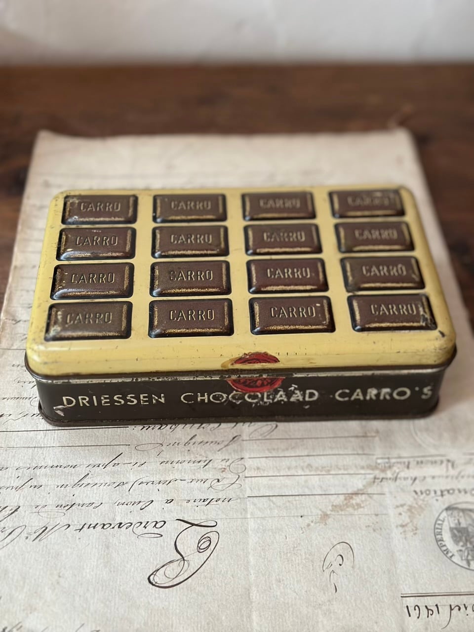 本体には「N.V. Cacao & Chocolaadfabrieken A. Driessen」という当時の社名が刻印されており、オランダの豊かなチョコレート文化の黄金期を今に伝えています。