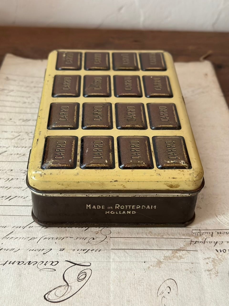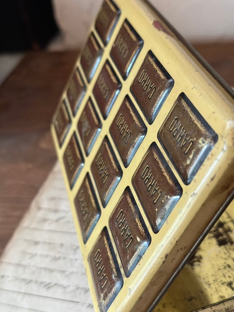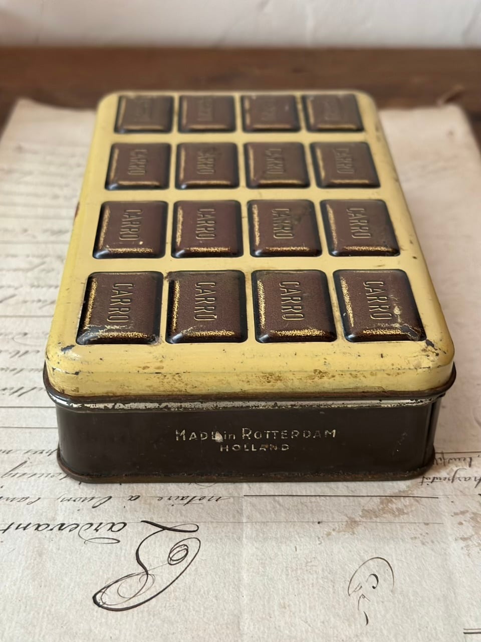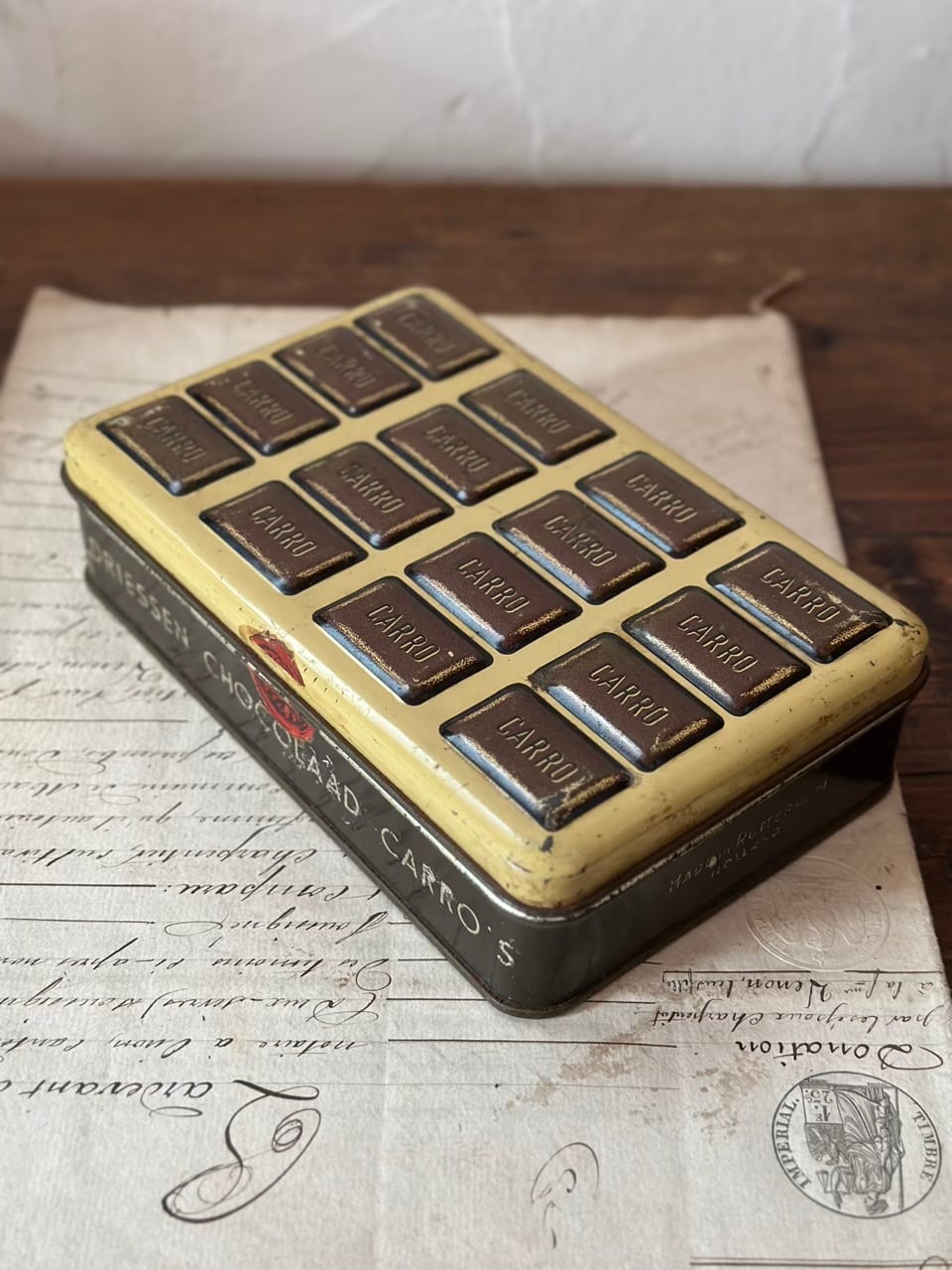 こちらは1920年代〜1940年代頃に作られた、彼らの代表作「Carro(キャロ)」のためのチョコレート缶です。