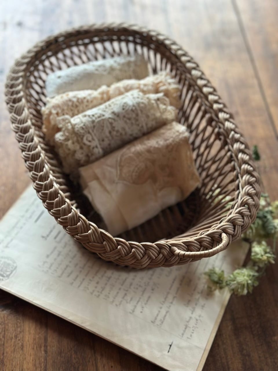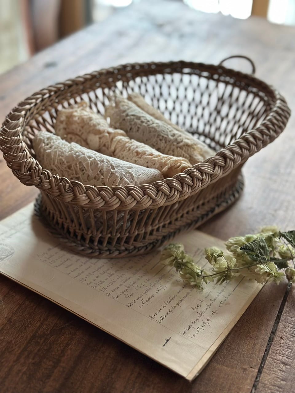 リネンのクロスを敷いて、焼きたてのバゲットや果物を置いたり、お気に入りの手紙やレース、手仕事の道具をまとめて。