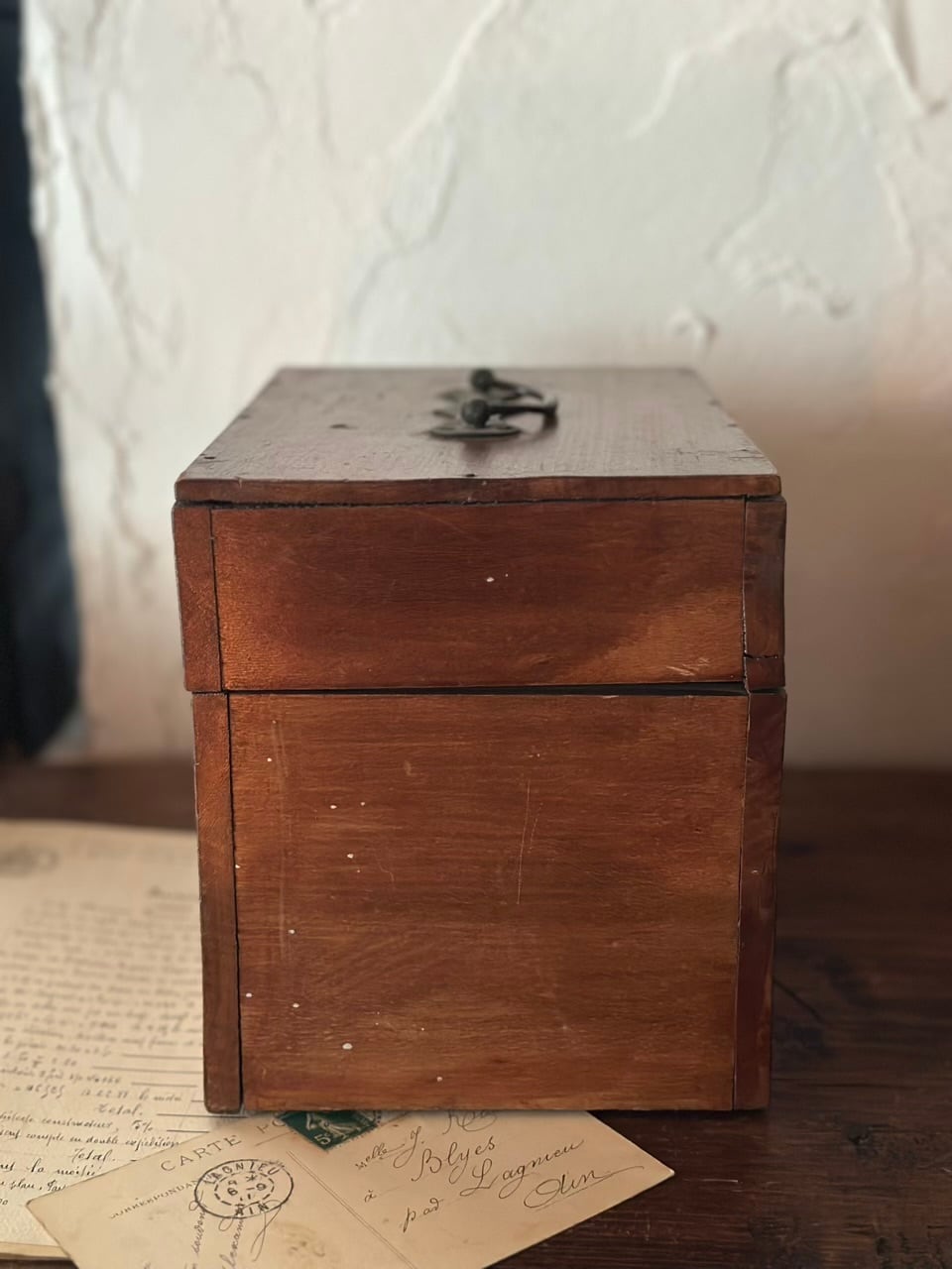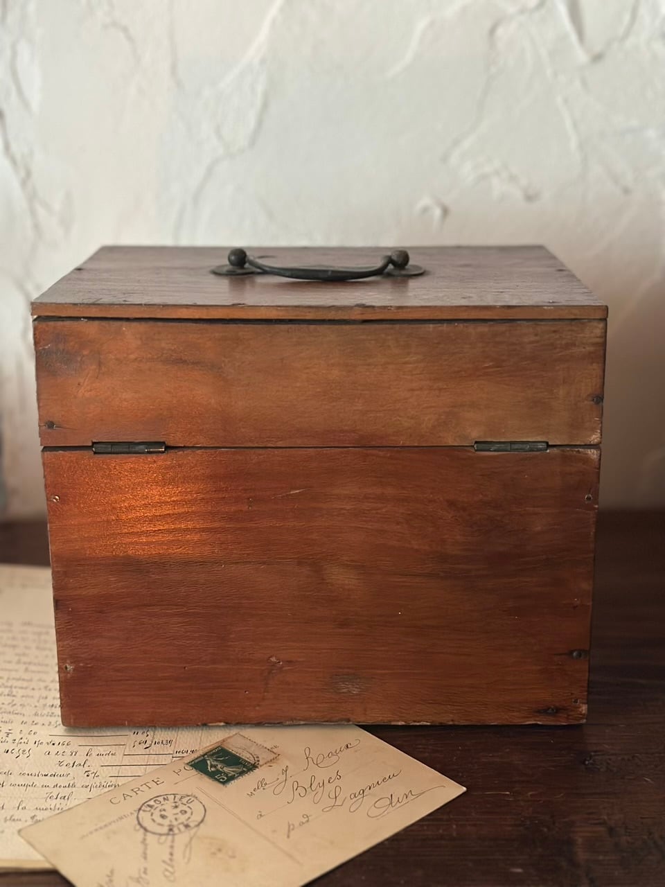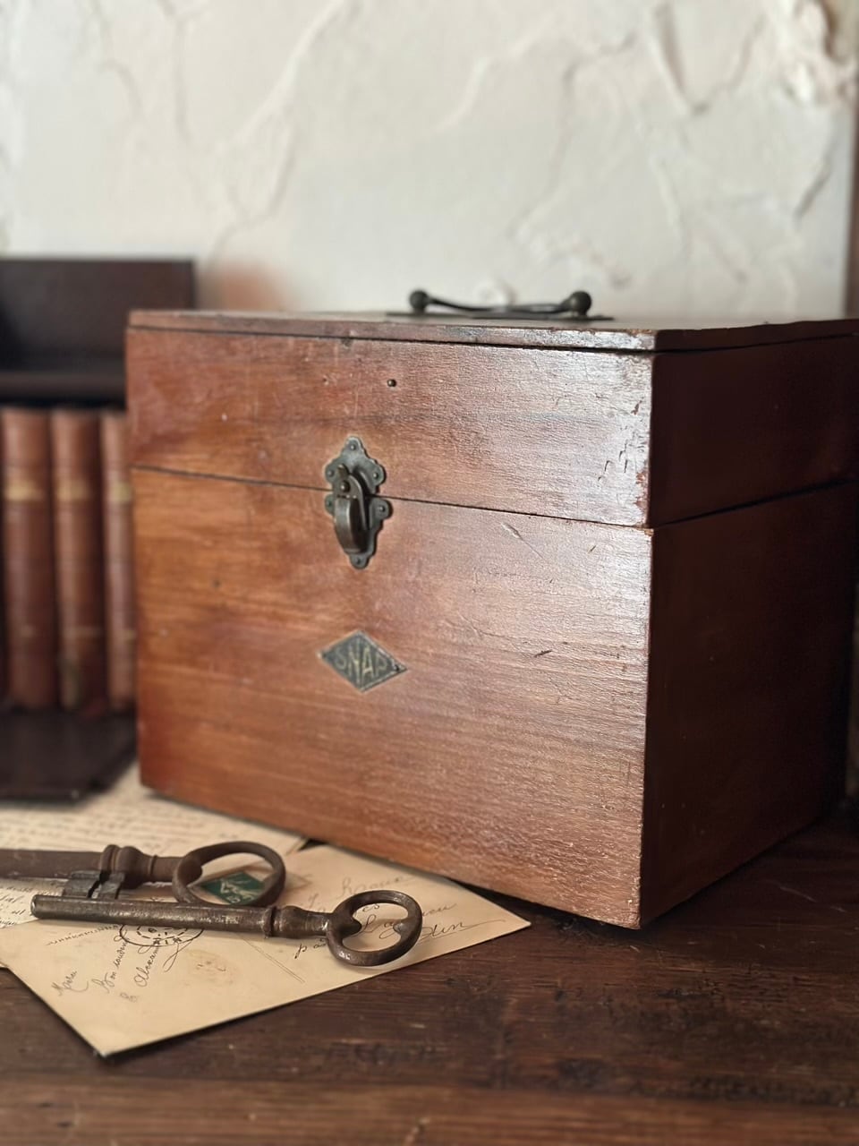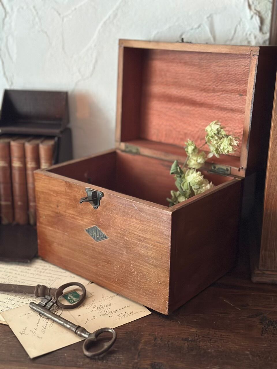 フランスより入荷しました、古い邸宅の書斎に置かれていたかのような、深い飴色の艶を纏ったアンティーク・ウッドボックスです。