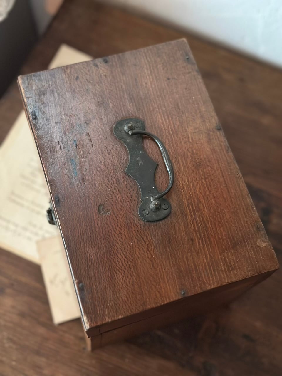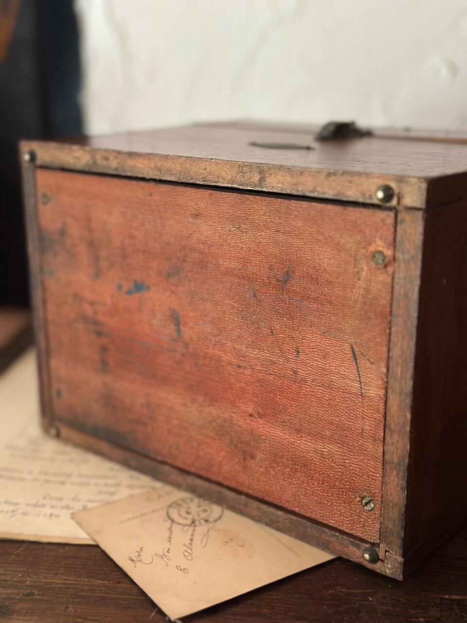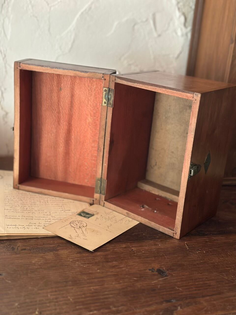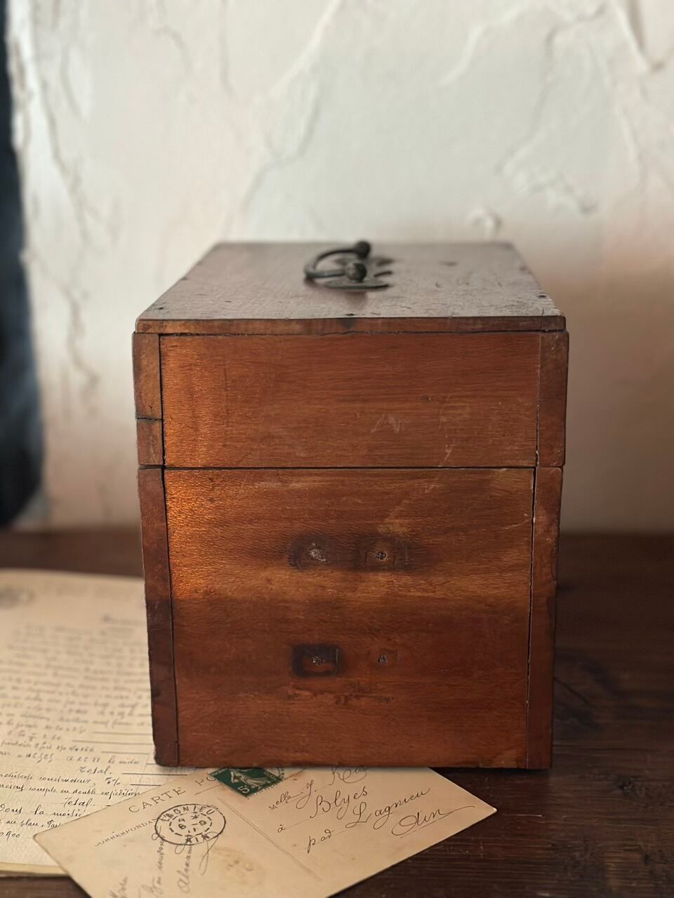 フランスより入荷しました、古い邸宅の書斎に置かれていたかのような、深い飴色の艶を纏ったアンティーク・ウッドボックスです。