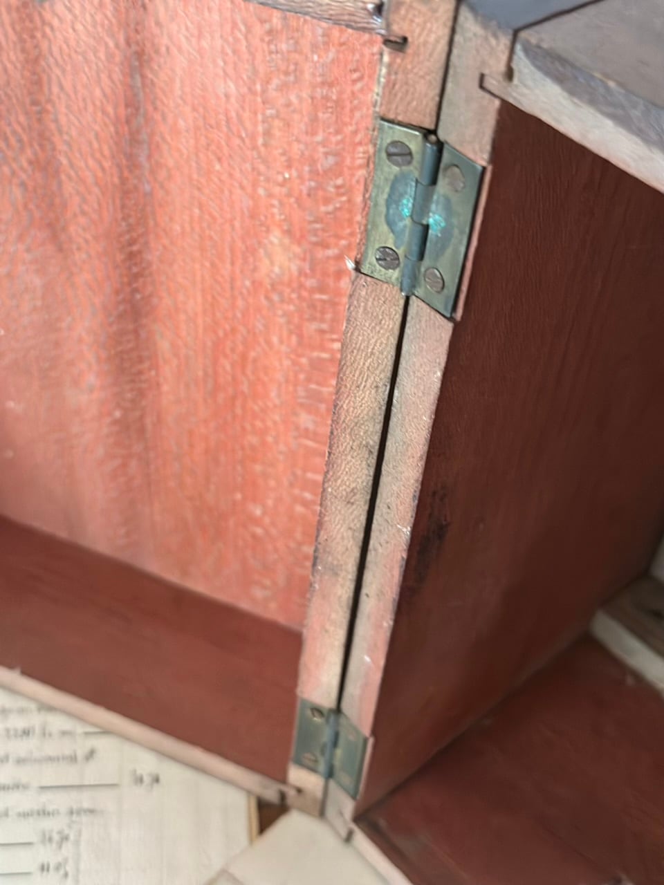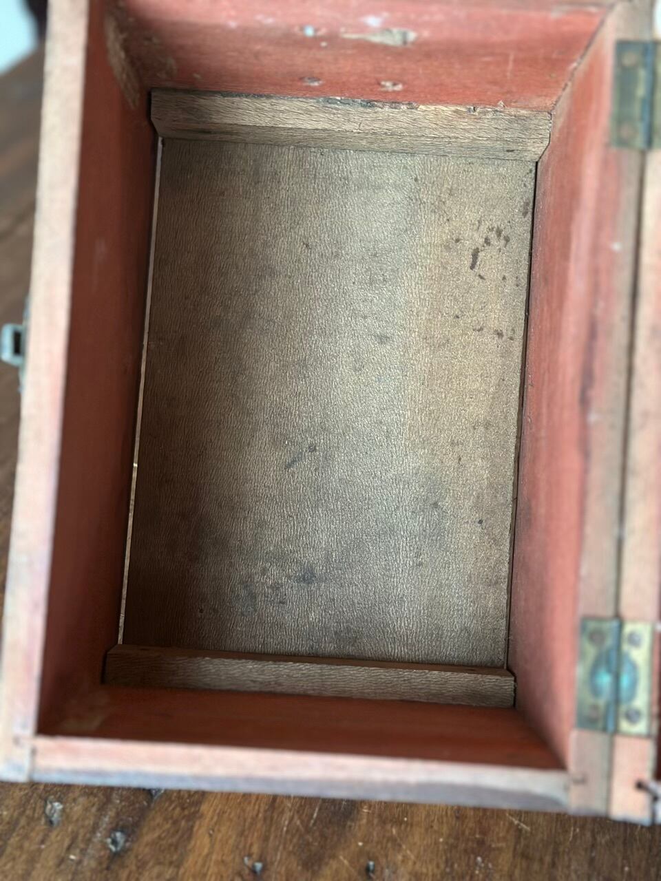 内側は、外側の凛とした表情とは対照的に、温かみのある赤みがかった色合いが残っています。蓋を開けるたびに、どこか懐かしいフランスの古い空気を感じさせてくれるはずです。