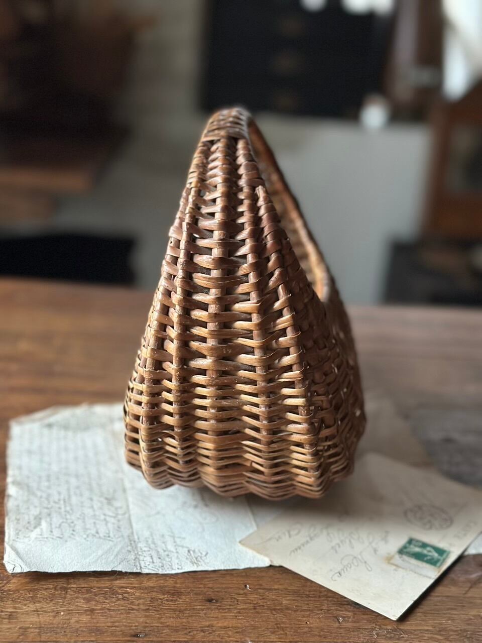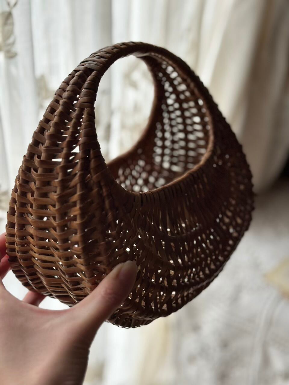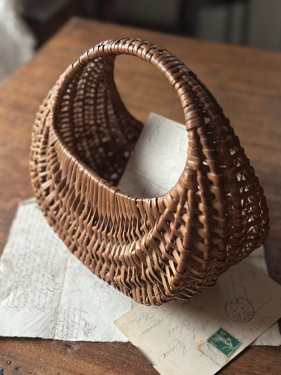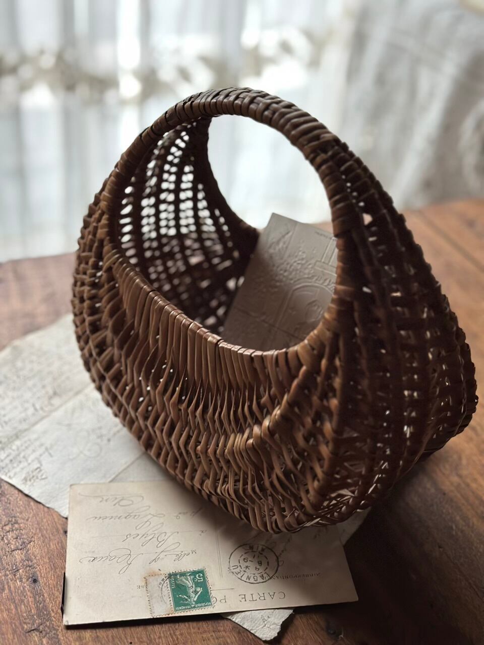 フランスの蚤の市で買い付けました、クロワッサンのようなコロンとした形が可愛らしいパニエです。マットな質感と、経年による鈍い艶がなんとも言えない古いものの良さとして魅力を放っています。