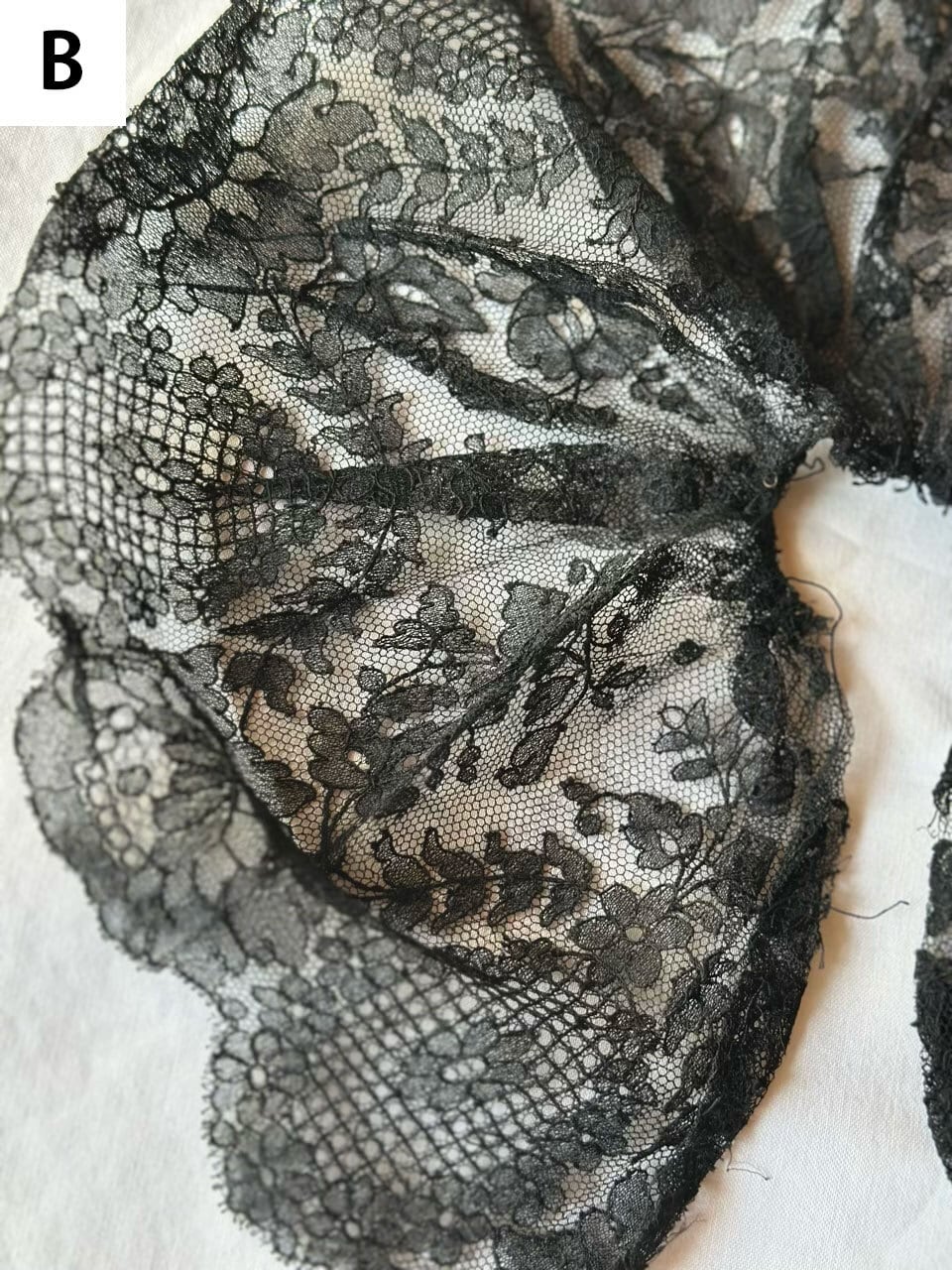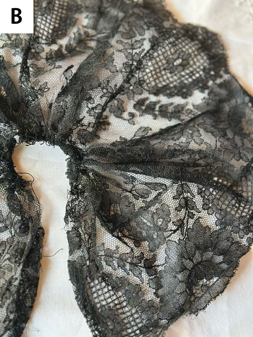 かつて貴婦人の袖口を飾り、あるいは手袋を彩っていたのでしょうか。誰かの手によって寄せられたギャザーが、今もなお美しい立体感を描いています。