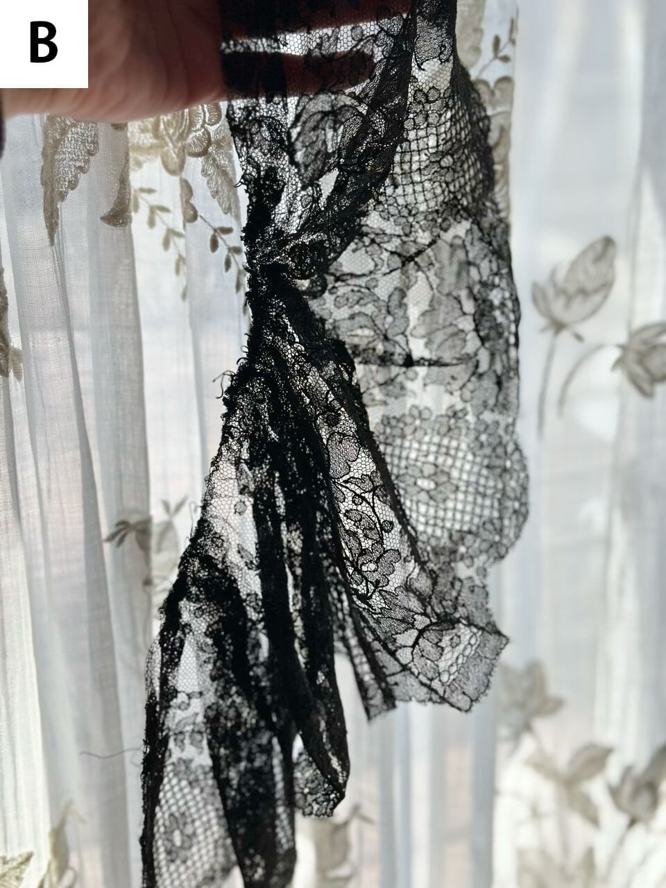 おそらく1890年〜1920年頃。当時、フランスのLilleやCalaisで盛んだったリバーレース機で織られたものと思われます。手編みのシャンティ・レースを模した非常に精巧なデザインです。