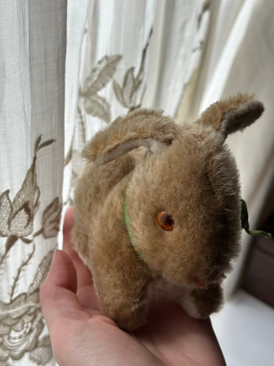 手乗りうさぎ ぬいぐるみ 緑のリボン