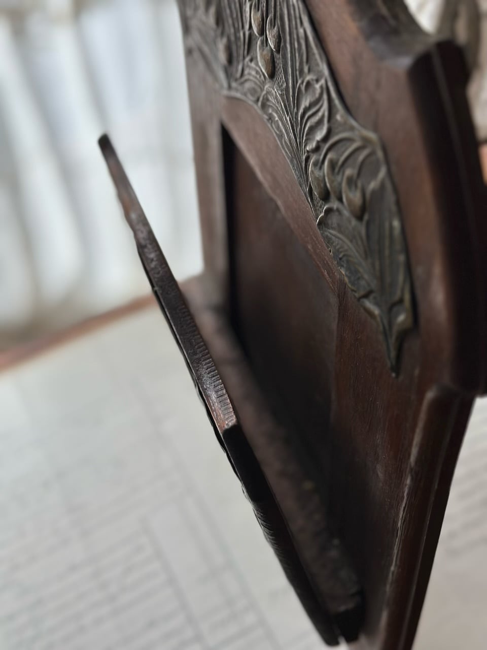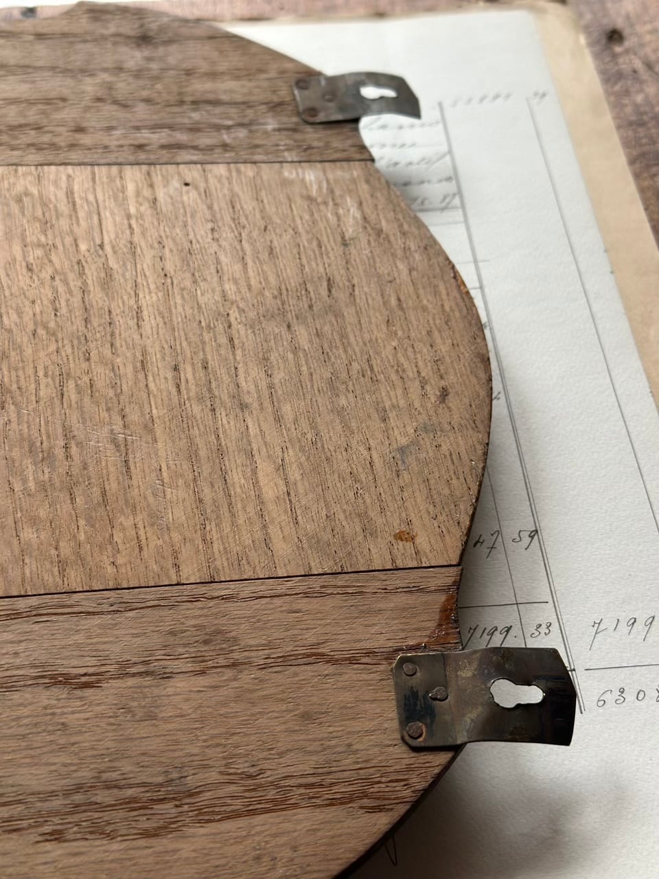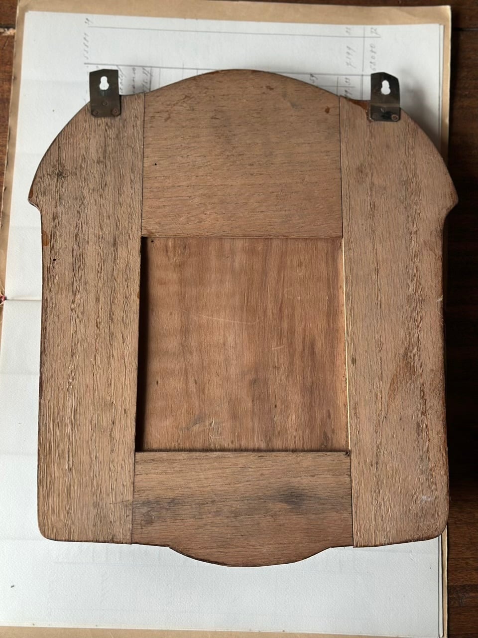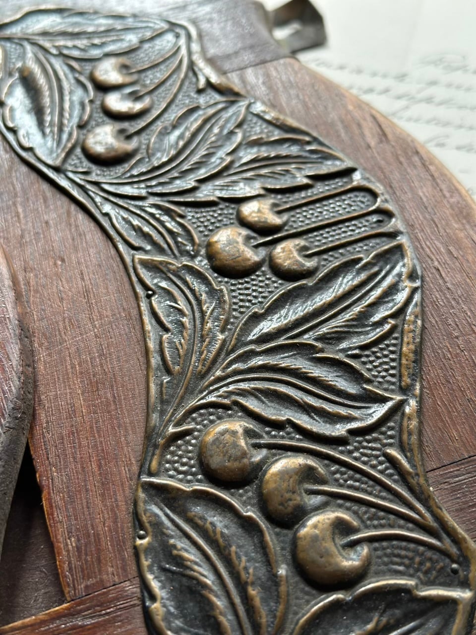 木製の土台に、立体的な真鍮の飾板が施されています。