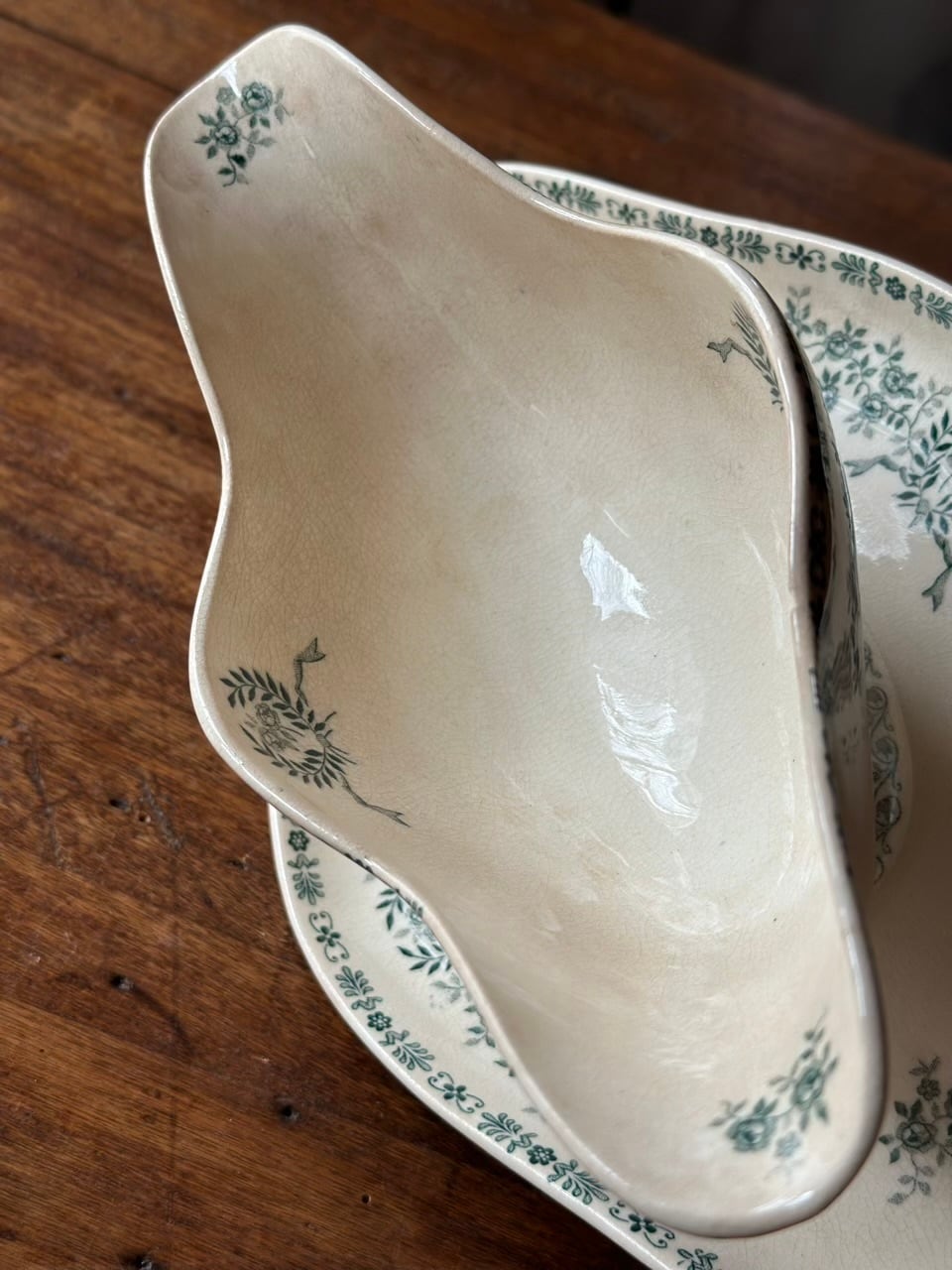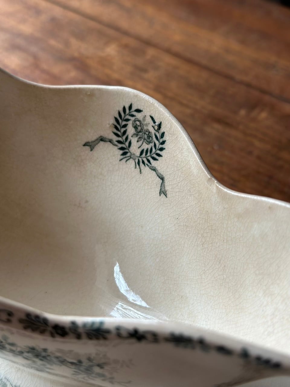 長い年月を経て生まれた細かな貫入は全体に広がっています。また、均一ではない陶肌の柔らかな色づきも、アンティークにしかない美しさです。