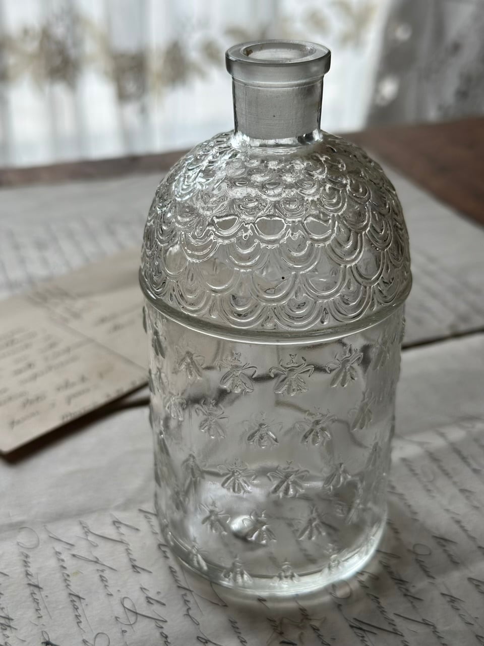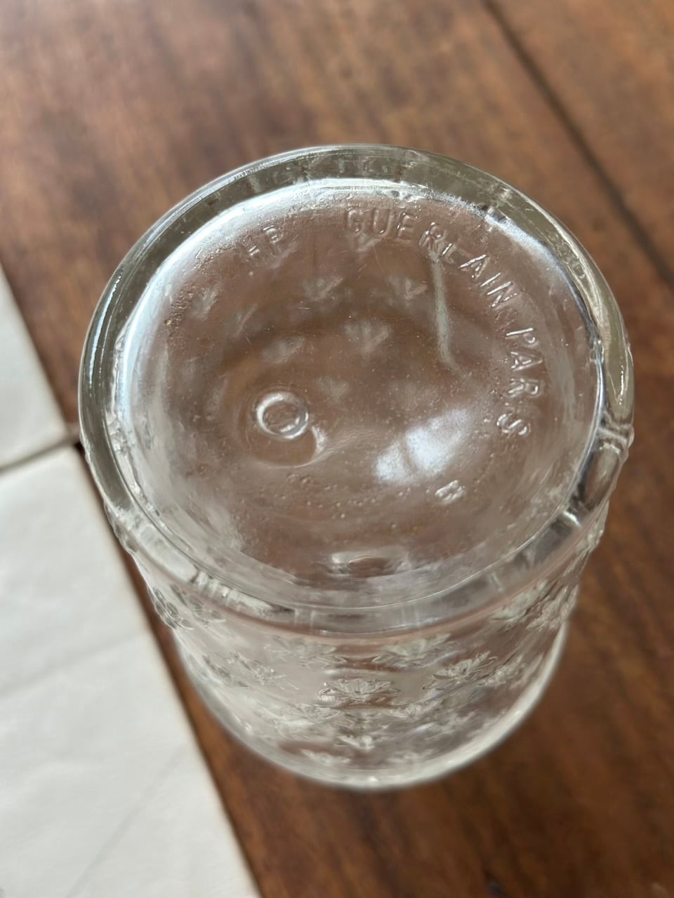 光にかざすと、精緻なレリーフで施された蜂たちが、まるで春の庭園を舞っているかのようにキラキラと輝きます。1853年にユージェニー皇后への献上品として生まれて以来、170年以上にわたり、気品とエレガンスの象徴としてその姿を変えずに守られてきました。底面に「GUERLAIN PARIS」の刻印あり。