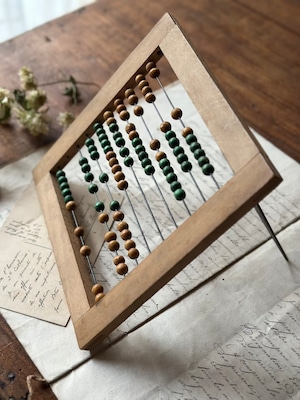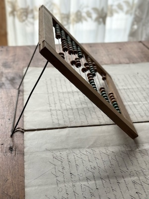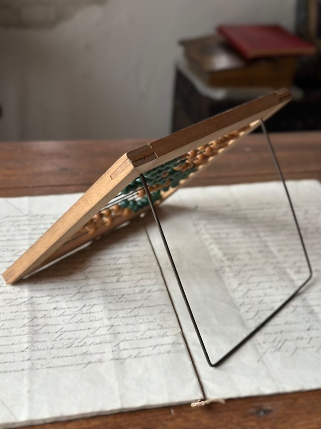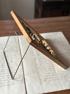 かつてフランスの子供たちが、一粒ずつ玉を弾きながら数字と戯れた、日々の記憶が刻まれた道具。シンプルな構造ながら、自立するための細いワイヤーが背面に添えられており、角度調節も可能です。玉も全てスムーズに動きます。