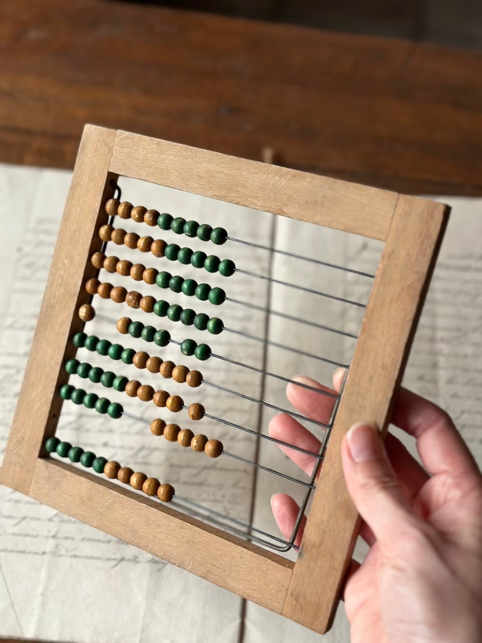 フランスの古い学び舎からやってきた、小さな木製のそろばん「ブーリエ(アバカス)」。