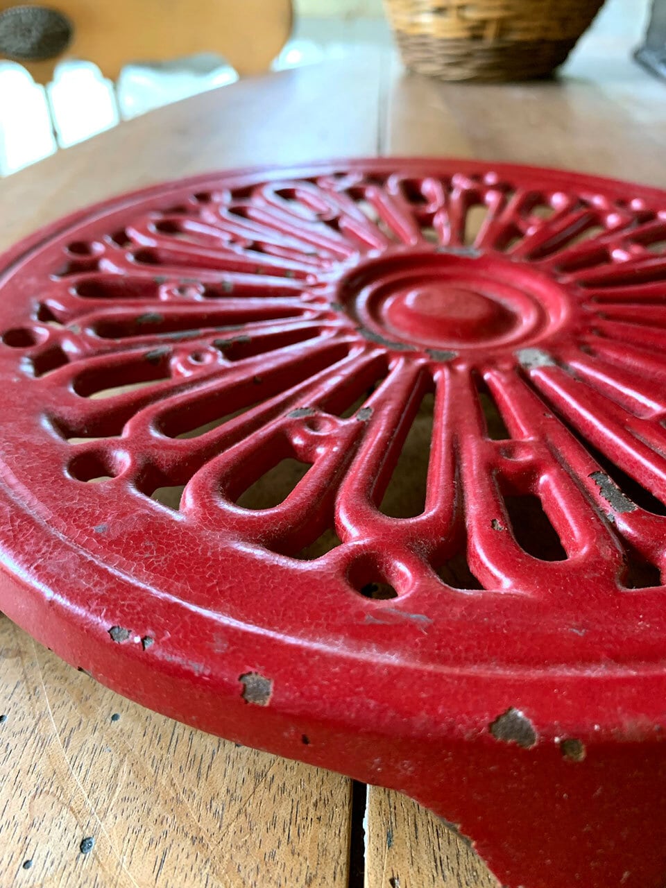 コレクターも多いクーザンスブランドの真っ赤な鍋敷き。キッチンインテリアのアクセントにいかがでしょうか。