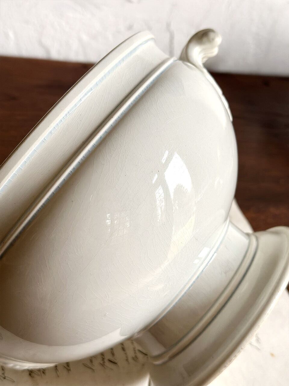 19世紀中期(1850-1870年頃)のCreil et Montereau クレイユ・エ・モントローのスーピエールです。持ち手の美しいレリーフからは気品が感じられます。